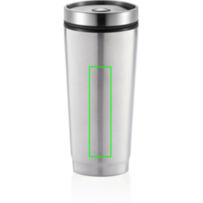 350ml Becher aus Edelstahl, innen Kunststoff, mit Push-Knopf zum dichten Verschließen des Bechers, geeignet zur einhändigen Bedienung. Nur Handwäsche. Geschütztes Design®