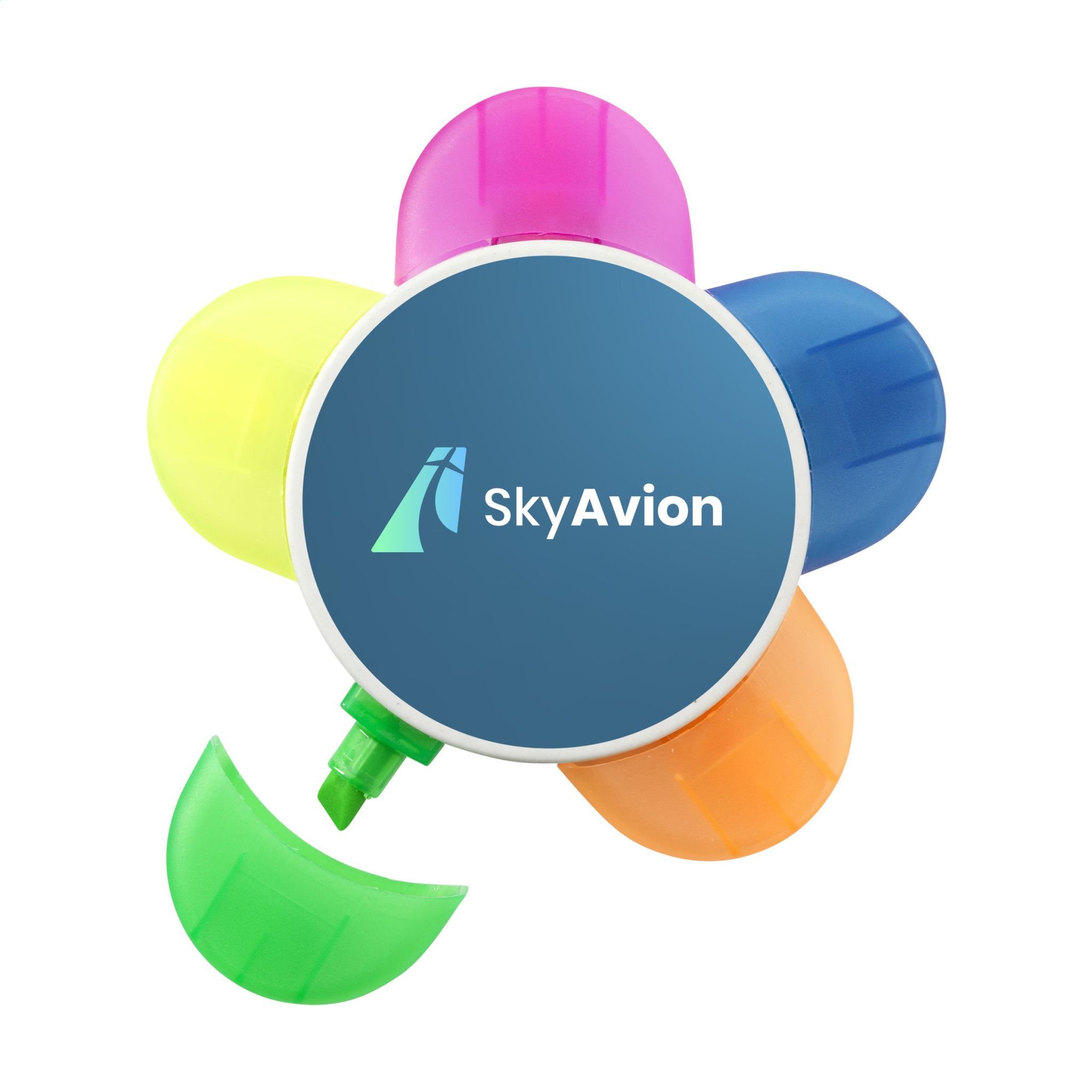 WoW! Textmarker mit 5 fluoreszierenden Farben. Das Gehäuse des Textmarkers besteht zu 40 % aus recycelten Milchkartons und zu 60 % aus Kunststoff. Die Milchkartons bestehen aus Aluminium, Papier und Kunststoff. Diese Materialien werden voneinander getrennt und die übrig gebliebenen Kunststoffe werden zur Herstellung dieses Textmarkers verwendet. Aufgrund der Verwendung recycelter Materialien können kleine Unvollkommenheiten im Material sichtbar sein. Dies verleiht dem Produkt ein einzigartiges Aussehen.
