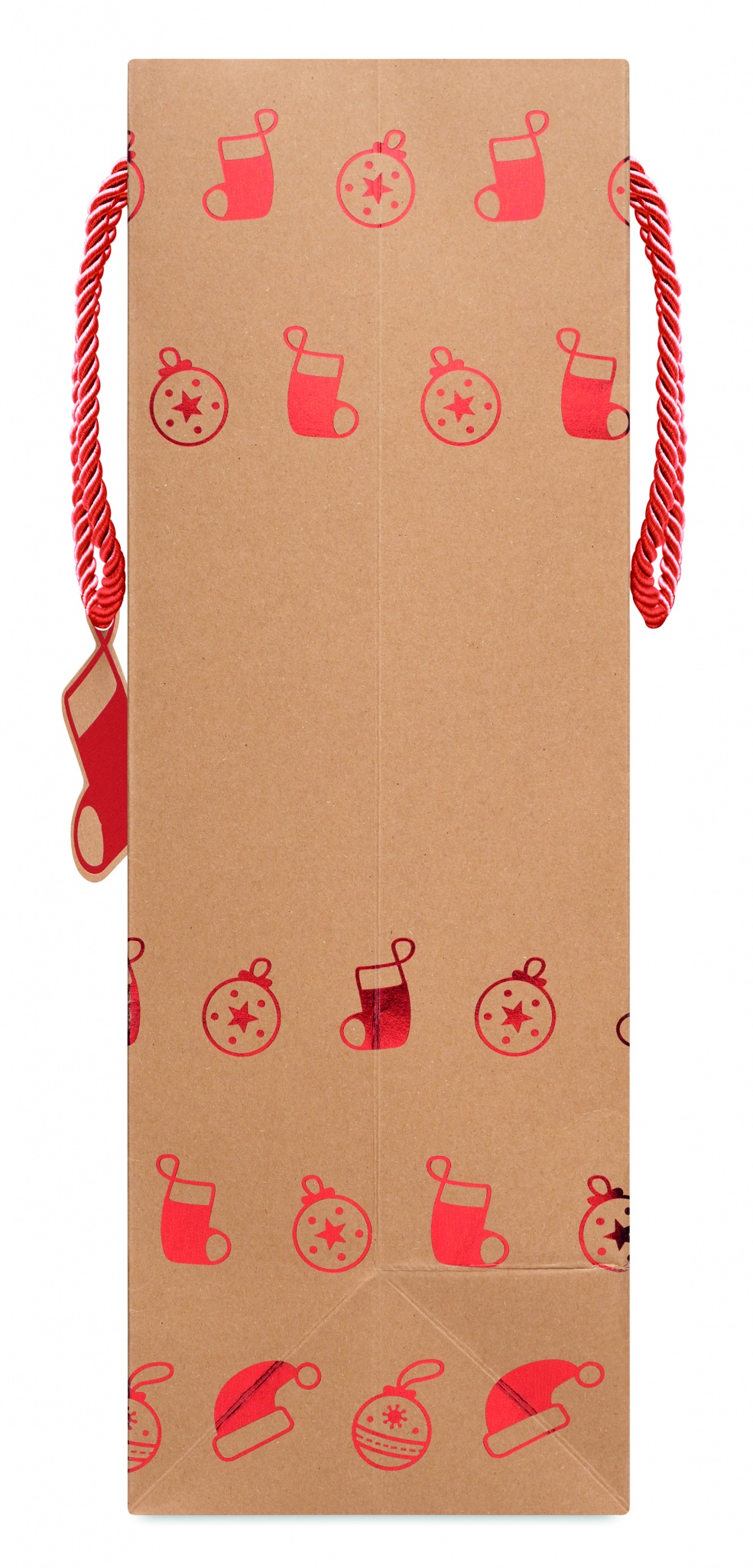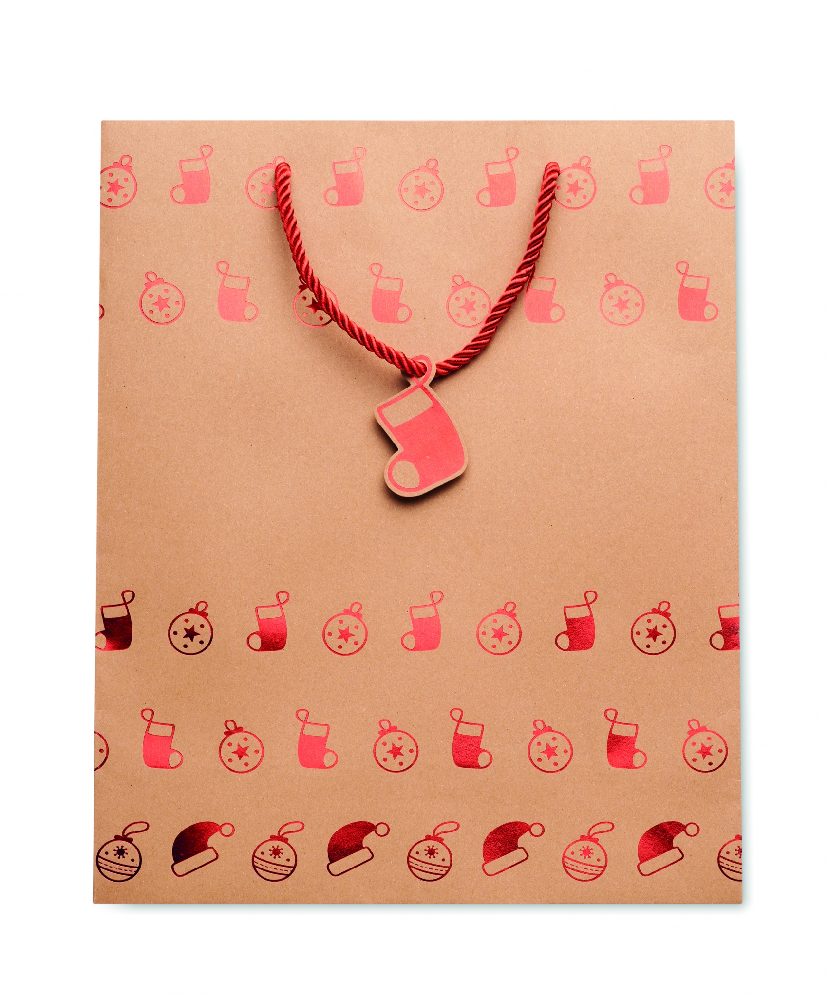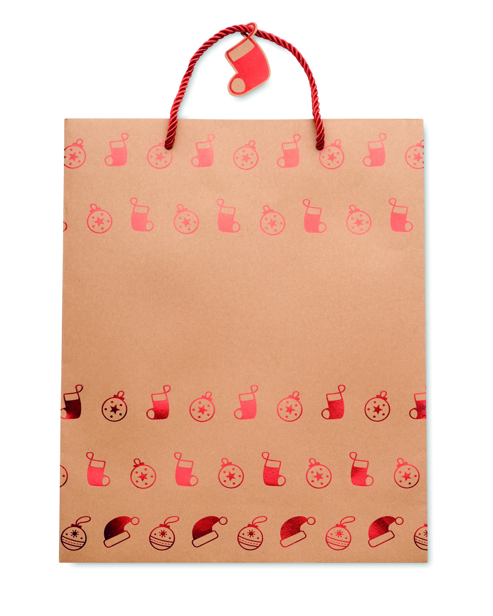 Elegante Geschenktüte aus Kraftpapier mit saisonalem Muster. Inklusive Geschenkanhänger. 250 g/m².