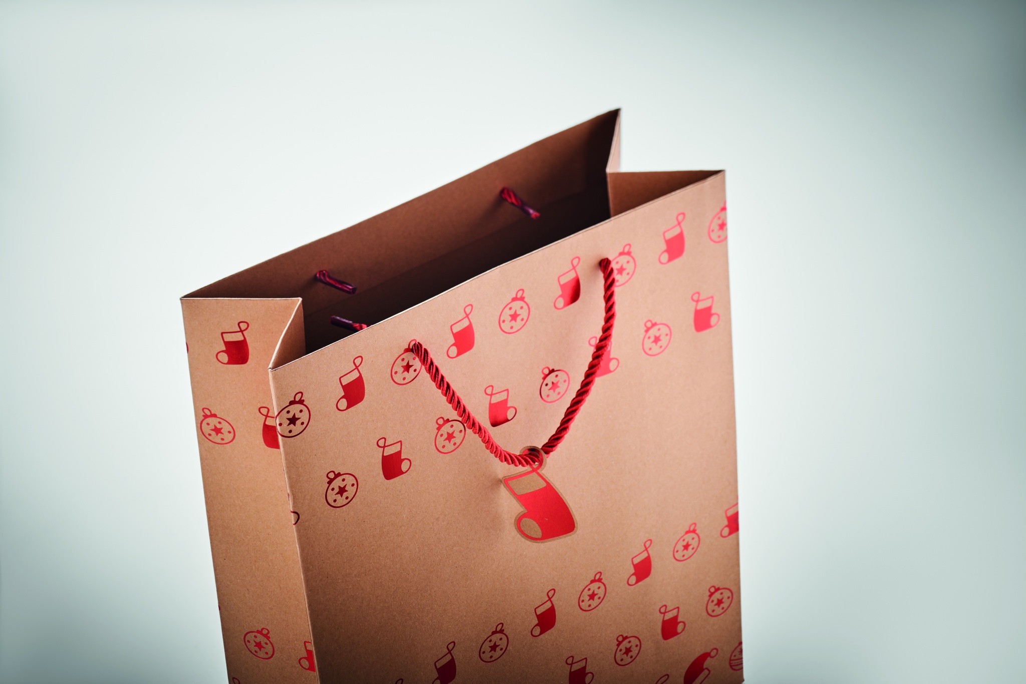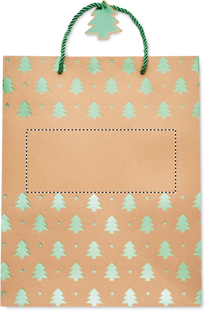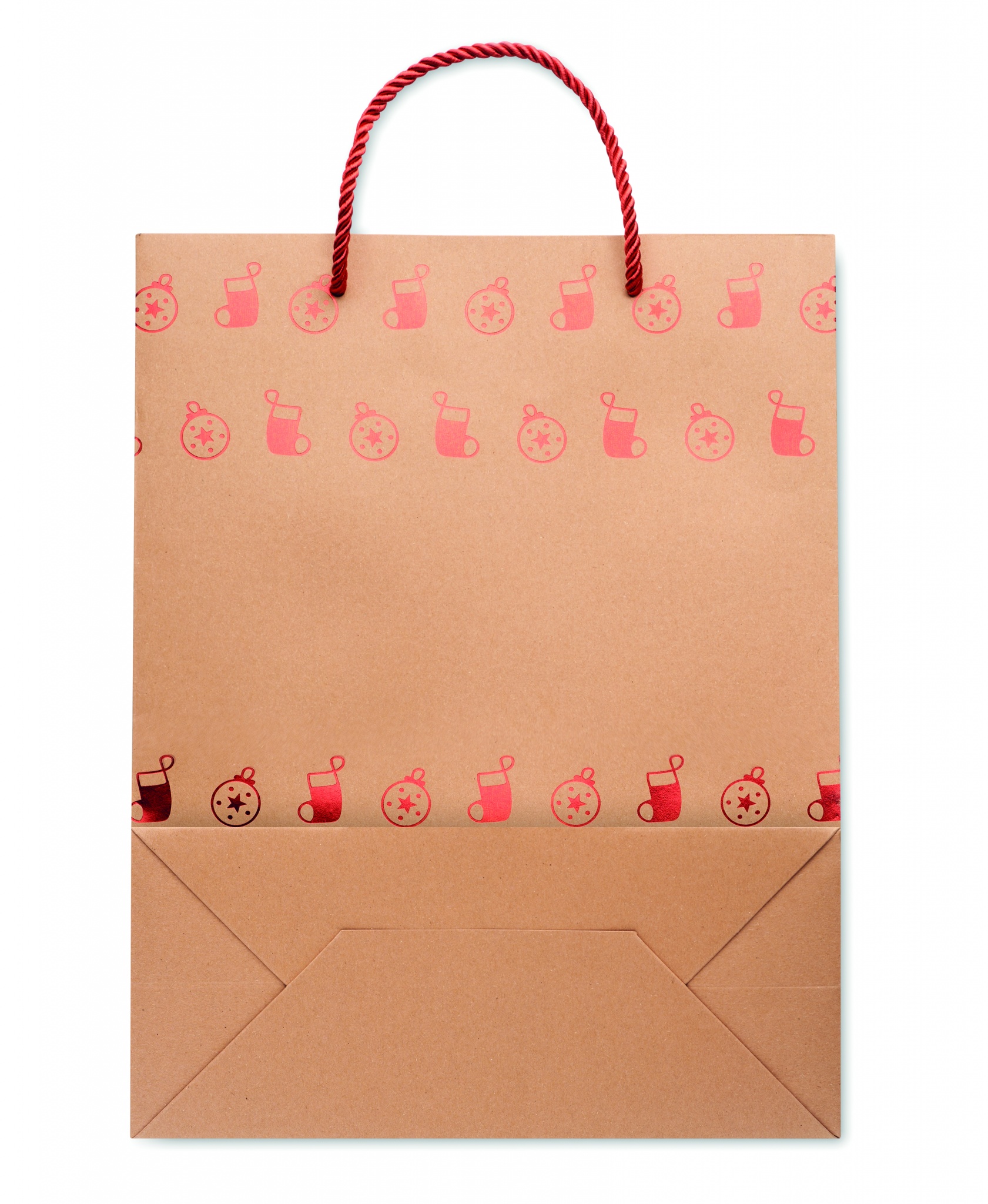 Elegante Geschenktüte aus Kraftpapier mit saisonalem Muster. Inklusive Geschenkanhänger. 250 g/m².