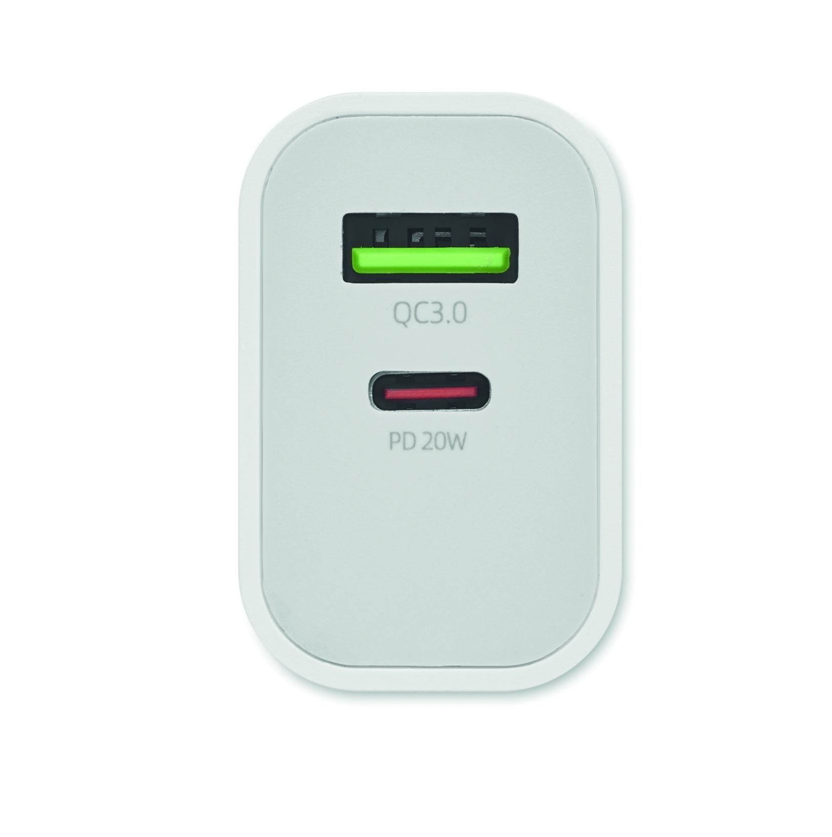 Logo trade business gift photo of: 18W 2 port USB charger EU plug