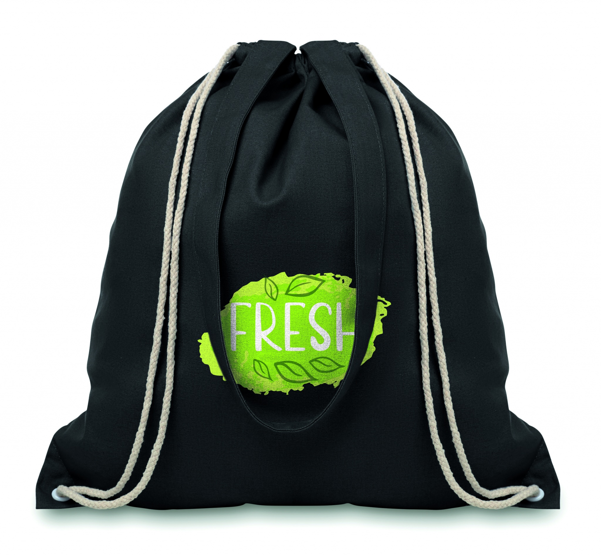 Canvas shopping bag with long handles and drawstring. 220 g/m².