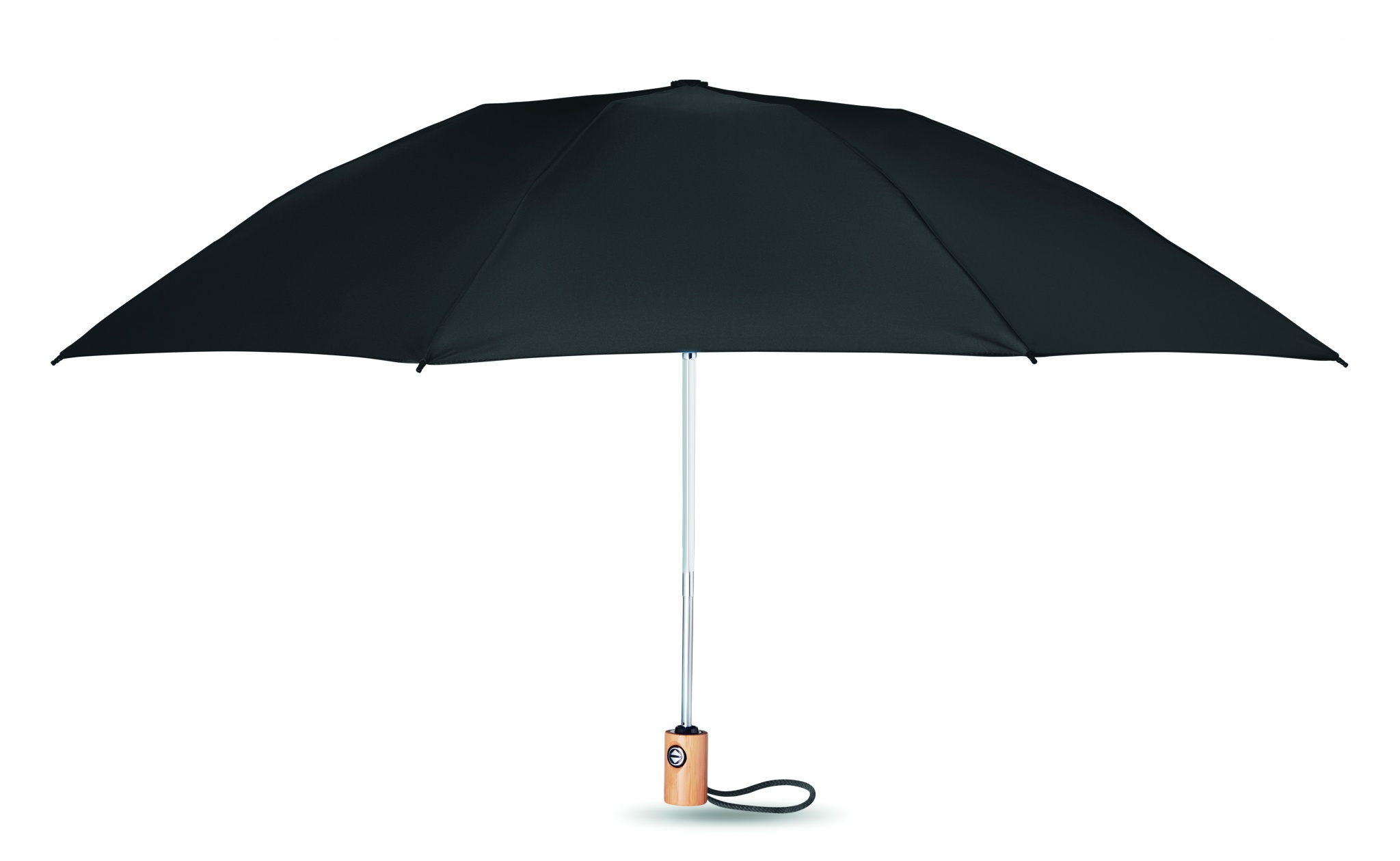23 inch 3 fold auto open/close reversible umbrella in 190T pongee RPET. Fibre-glass ribs. Bamboo handle with cotton wrist strap. Includes matching RPET pouch. Bamboo is a natural product, there may be slight variations in colour and size per item, which can affect the final decoration outcome.