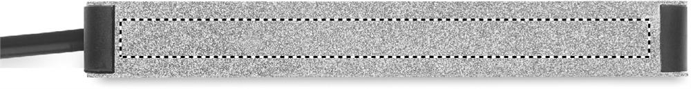 Charging cable in recycled aluminium. Output: 2 x Type-A and 1 x Type-C. Input:2-in-1 Type-C and Type-A. Cable length: 20 cm.