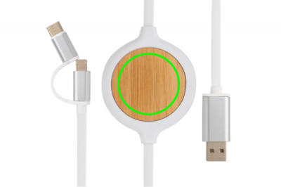 Logotrade promotional product image of: 3-in-1 cable with 5W bamboo wireless charger