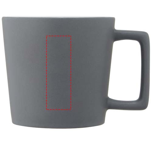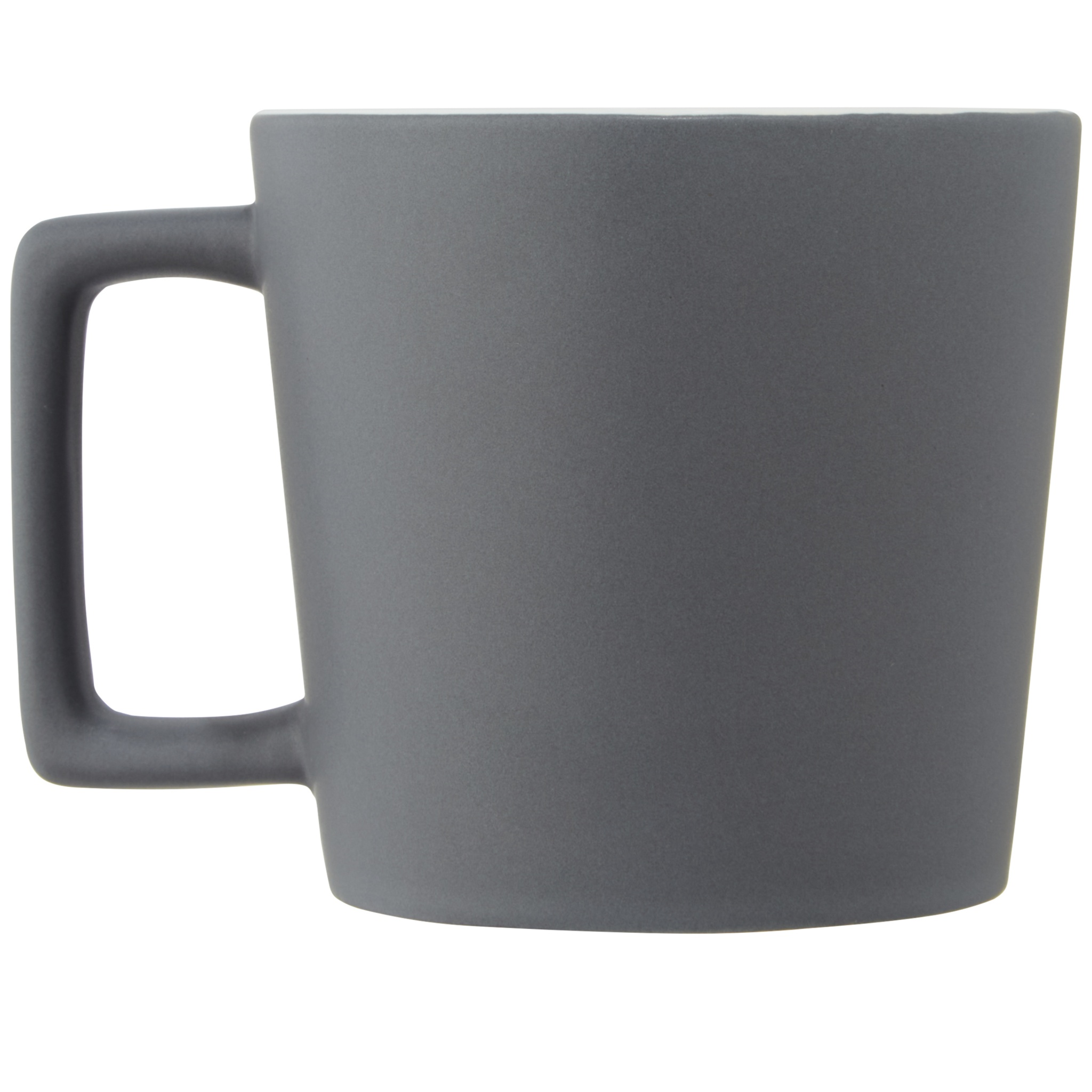 Ceramic mug with a modern design and matt finish. Volume capacity is 370 ml. Dishwasher safe for all decoration methods. Presented in a recycled cardboard gift box.
