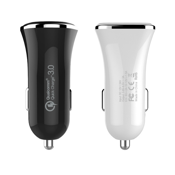 The perfect accessory for every car. You can easily charge all current smartphones and more with this USB charger. Just plug in into the cigarette lighter in your car. USB port can fast charge your smartphone thanks to Qualcomm Quick Charge QC3.0. Chip solutions:Qualcomm QC3.0 Input:12-24V Output:3.6V-6.5V/3A,or 6.5V-9V/2A,or 9V-12V/1.5A