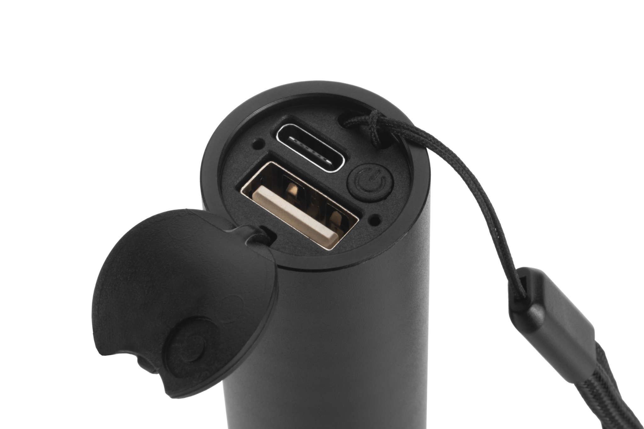 Schwarzwolf rechargeable flashlight with a wrist strap. It contains 5W XPG diode. It has 3 modes of lighting: strong, flashing and SOS. If you press the button longer you can switch on a dimming lighting. The flashlight offers a possibility to change a zoom and includes charging indicator light. Comes with a rechargeable 3.7V Lithium battery with 2000mAh capacity and USB-C recharging cable. The charging time of battery is 3 hours, discharging time 3,5 hours.
