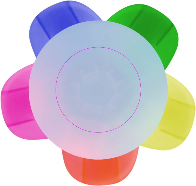 Highlighter with five different colors and large advertising space in the middle. We print your logo in the middle of the highlighter.