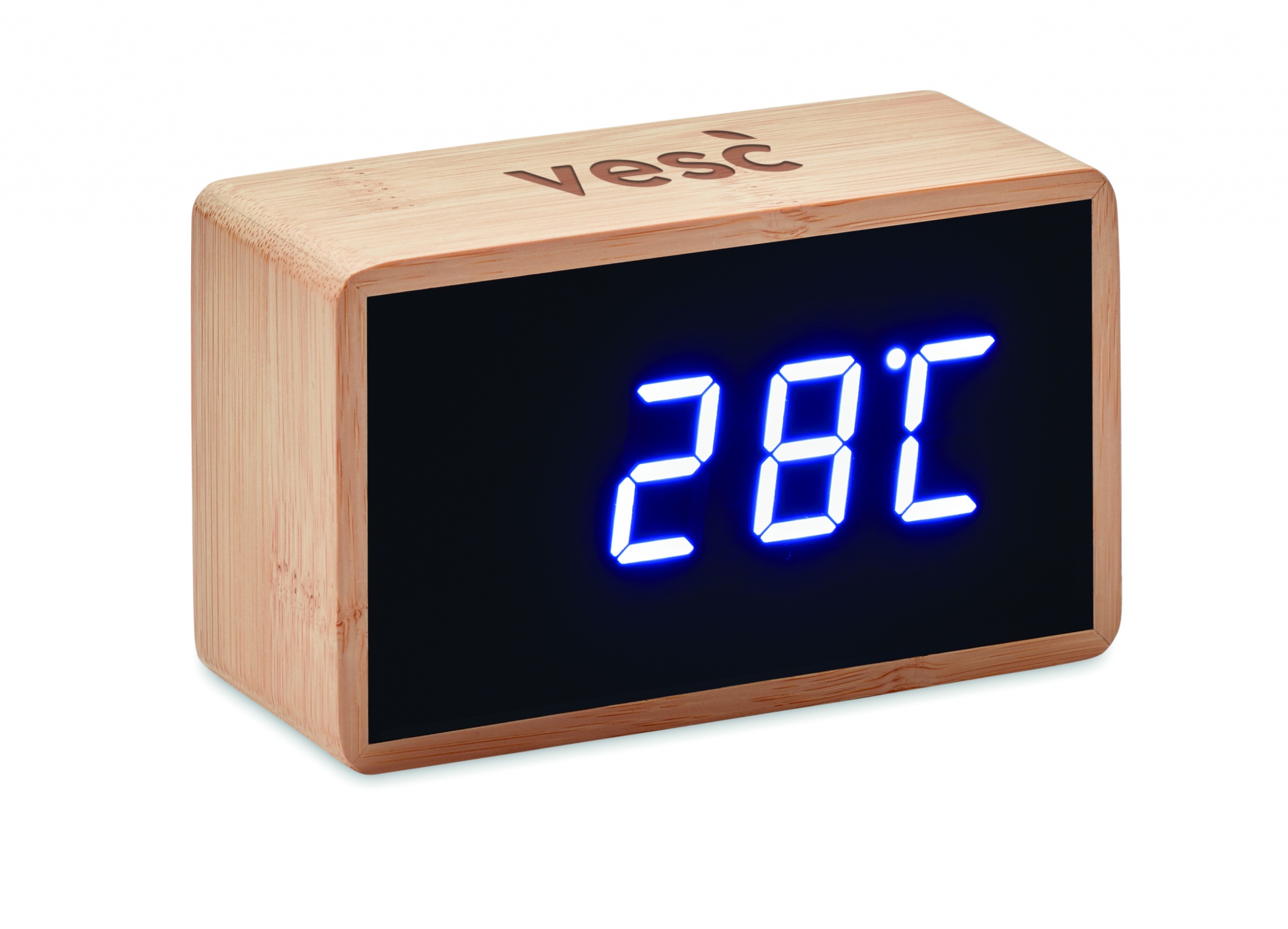 Logo trade promotional gifts image of: LED alarm clock bamboo casing Düsseldorf