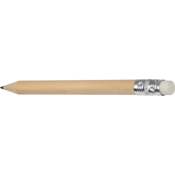 Mini pencil made of wood with an eraser. The pencil comes pre-sharpened.