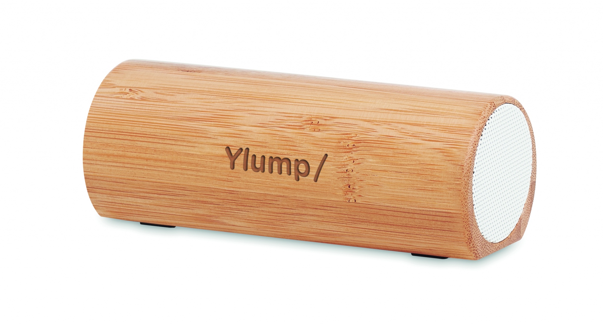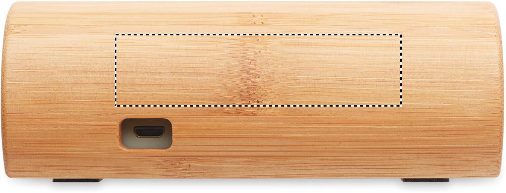 5.0 wireless stereo speaker in ABS with bamboo casing. Rechargeable Li-ion 2000 mAh battery included. Output data: 4 Ohm, 5Wx2. Playing time aprox. 4 hrs, charging time 3 hrs. Bamboo is a natural product, there may be slight variations in colour and size per item, which can affect the final decoration outcome.