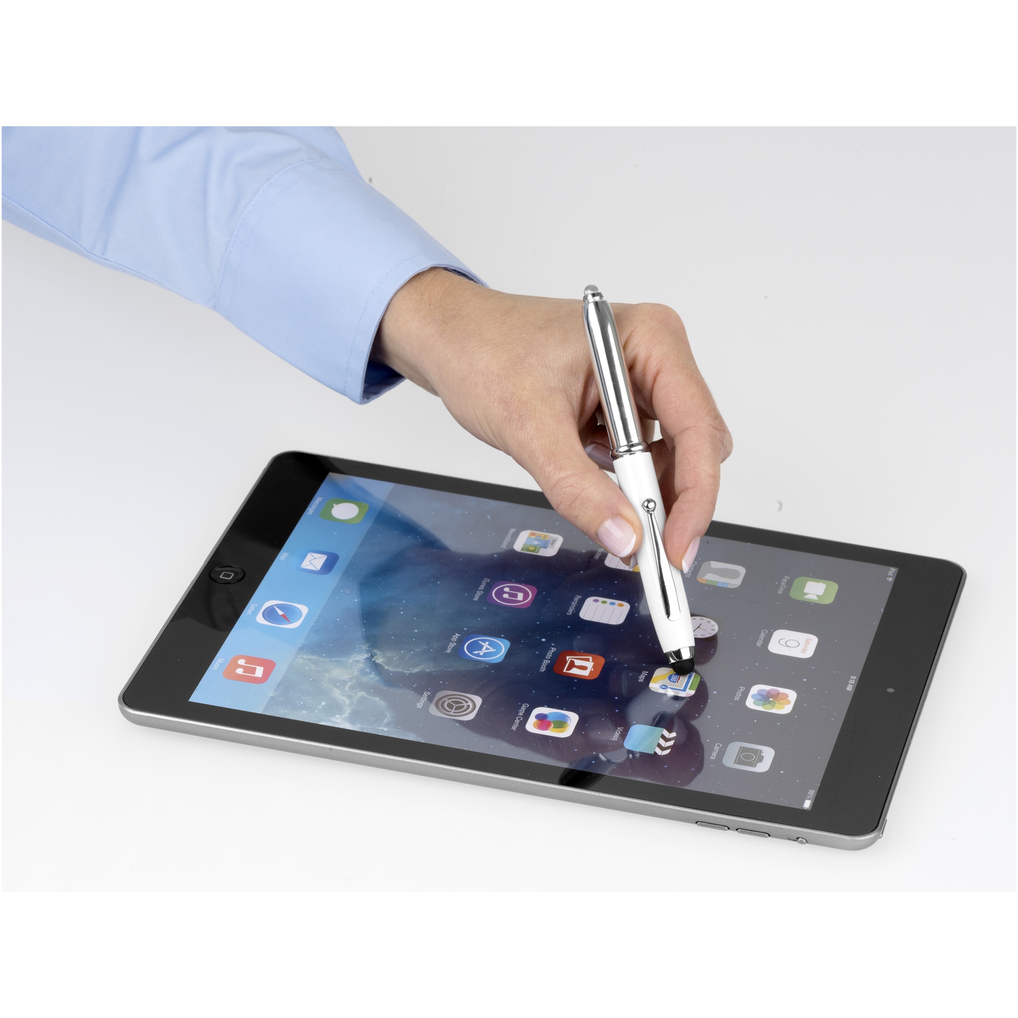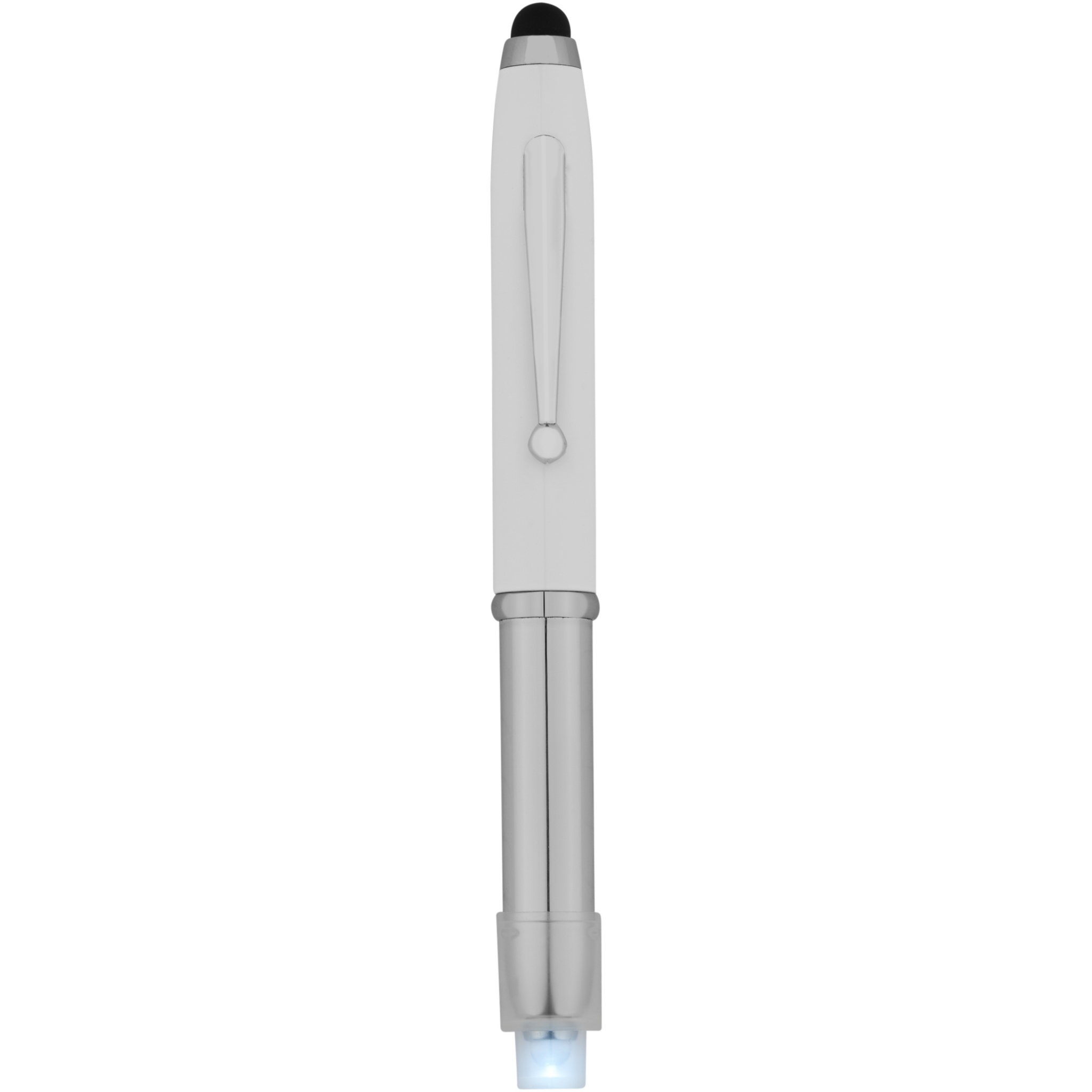 Xenon stylus ballpoint pen with LED light, White / Silver