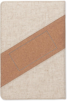 2-ühes märkmik. A5 märkmik integreeritud juhtmevaba laadijaga 15W. Kaanel puuvillased ja korgist detailid, 128 joonelist paberit (64 lehte). Lindiga järjehoidja.