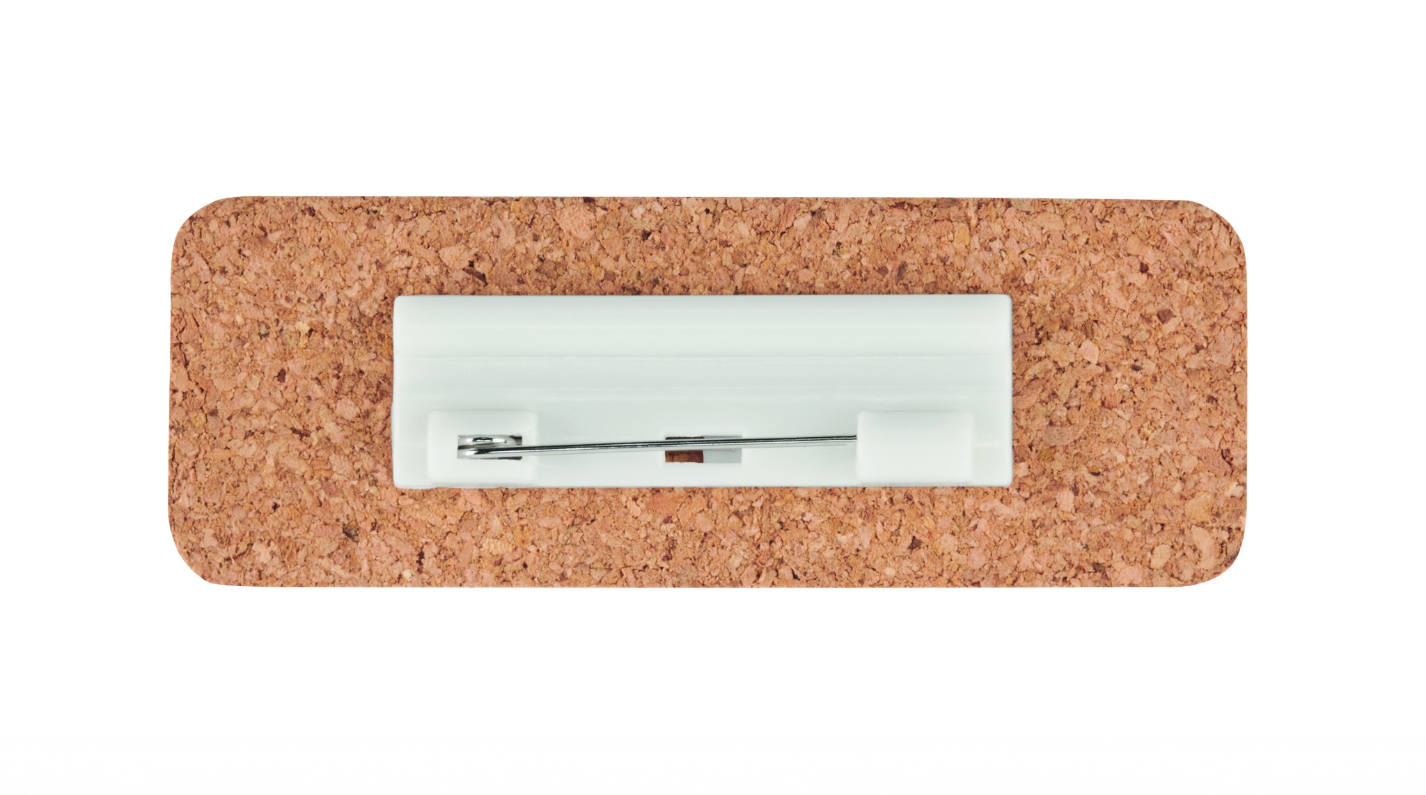 Tagaküljel nõelpandlaga korgist nimesildihoidja. Kork on 100% looduslik materjal. Selle struktuurse olemuse ja pinna poorsuse tõttu võib lõpptulemus eseme kohta esineda kõrvalekaldeid.