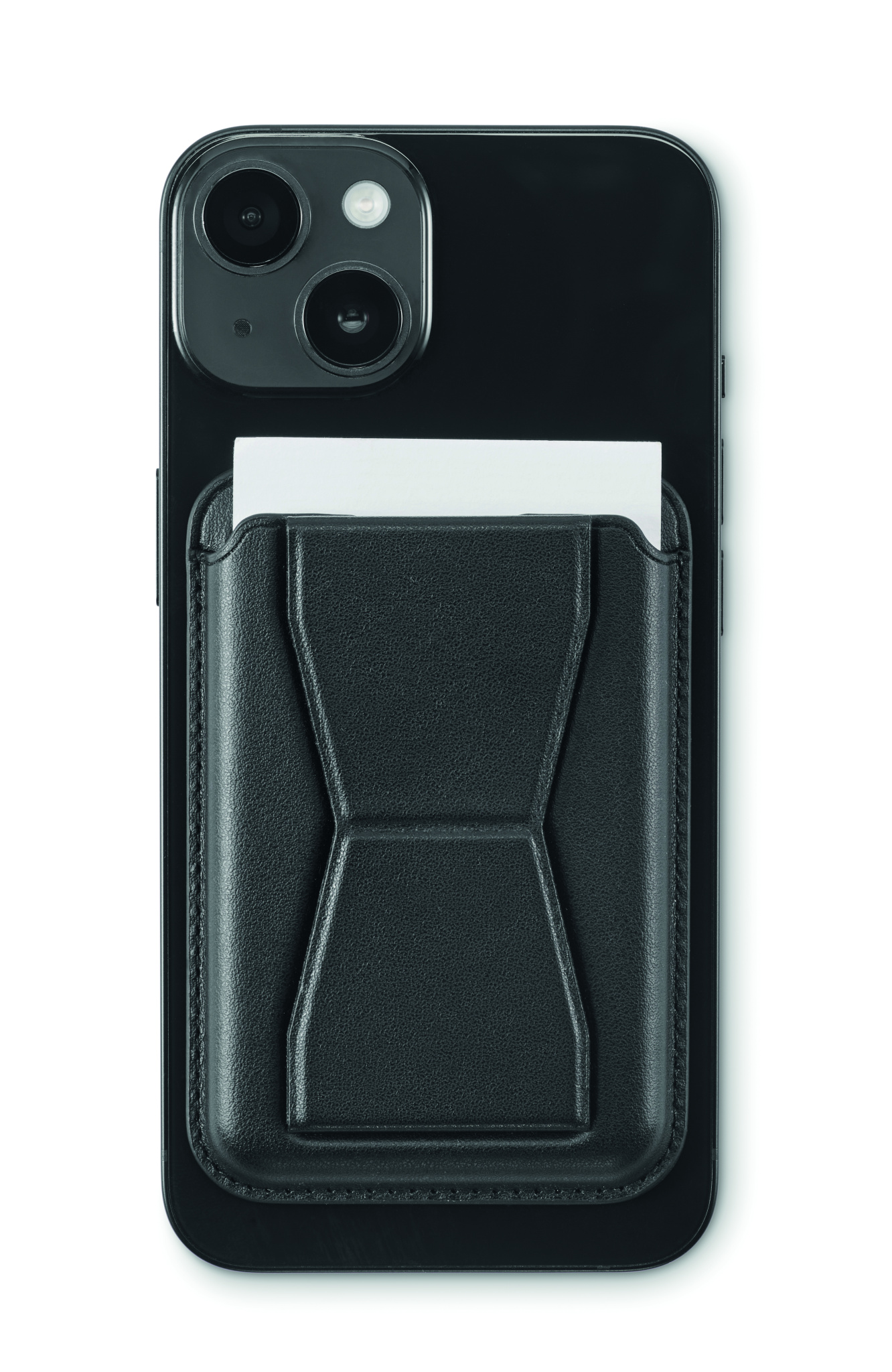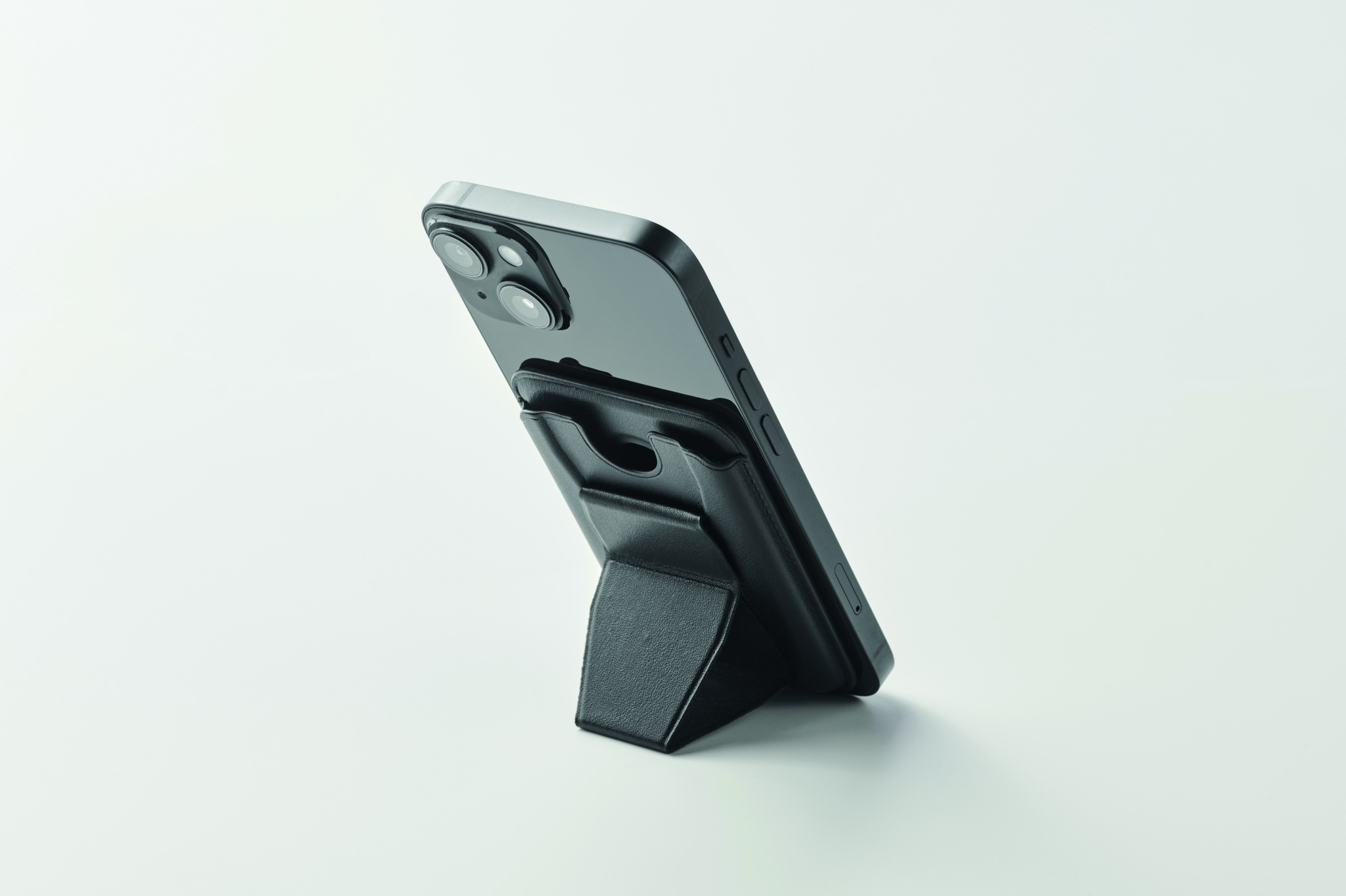 PU-nahast telefonikaardihoidja (2 kaardile) alusfunktsiooni ja magnetilise sulguriga. Ühildub iPhone® 12 ja uuemate mudelitega. Komplektis magnetiline metallrõngas teiste mittemagnetiliste juhtmevabalt laetavate telefonide laadimiseks.