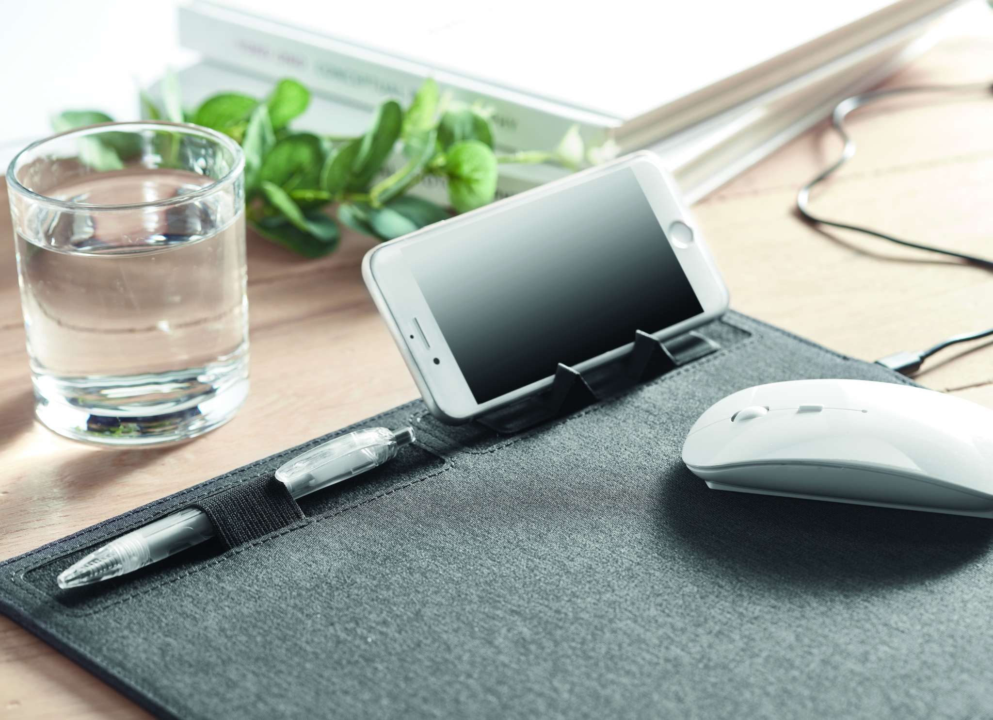 Multifunktsionaalne 2-tooniline 300D polüester RPET hiirematt 15W juhtmevaba laadija ja telefonialuse funktsionaalsusega. Väljund: DC 9V/1.6A (15W ) kiireks laadimiseks. Ühildub uusimate Androidide, iPhone® 8 ja uuemate versioonidega.