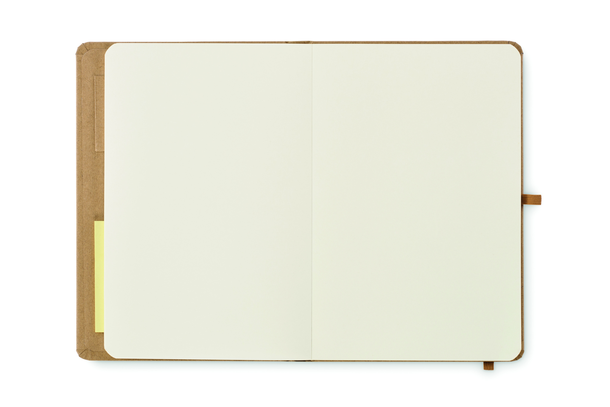 A5-kokoinen vihko, jossa on pahvikansi, 80 arkkia kierrätyspaperia (160 sivua), 25 arkkia muistilappuja ja 25 muistilappua. Joustava sulkuhihna ja kynälenkki.