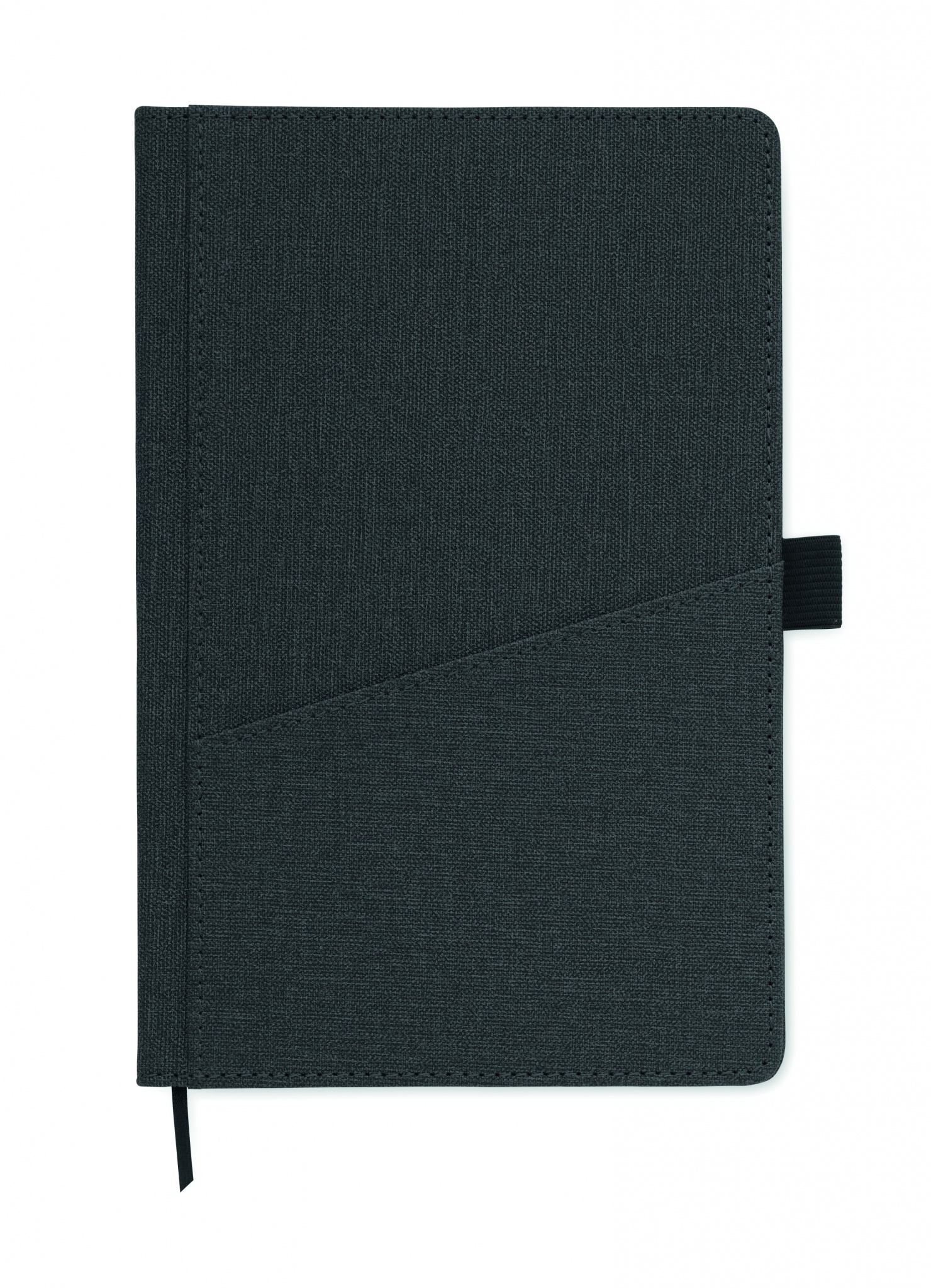 A5-muistikirja, jossa on PU-kova kansi ja puhelintasku edessä. Koteloitu. 160 viivoitettua sivua kierrätyspaperista (80 arkkia). Yhteensopiva kirjanmerkkinauha.