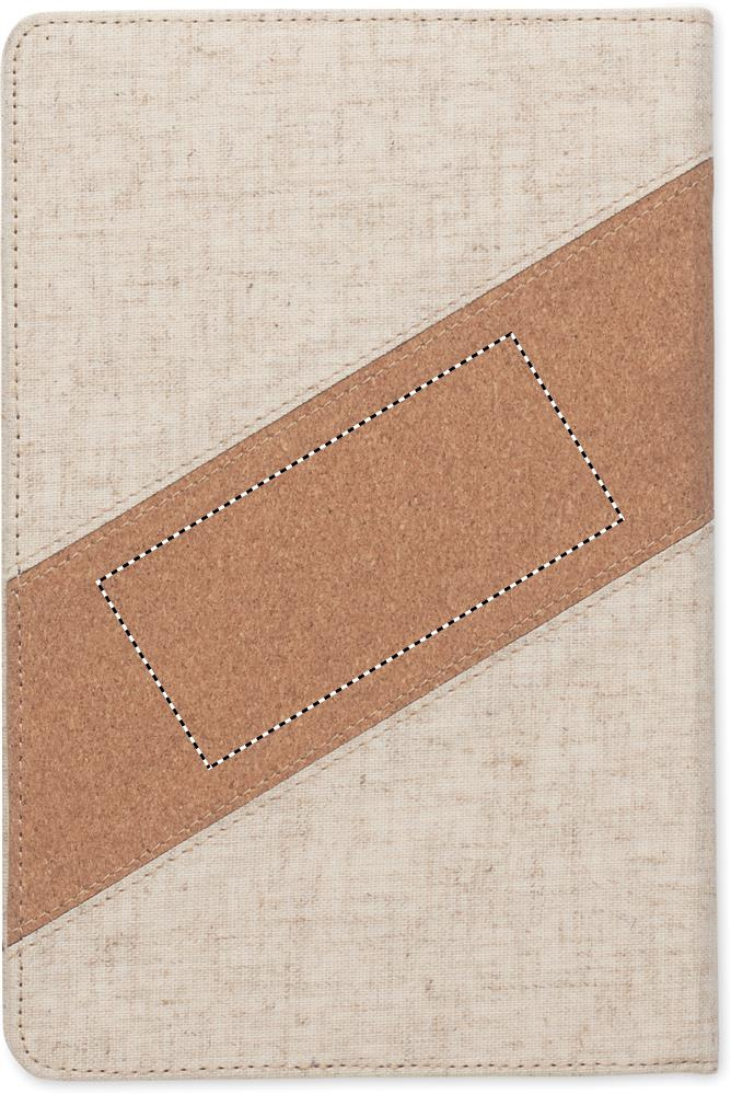 2-in-1-muistikirja. A5-kokoinen muistikirja, jossa integroitu 15 W:n langaton laturi. Kannessa puuvilla- ja korkkikoristeita, 128 viivoitettua sivua (64 arkkia). Nauhakirjanmerkki.