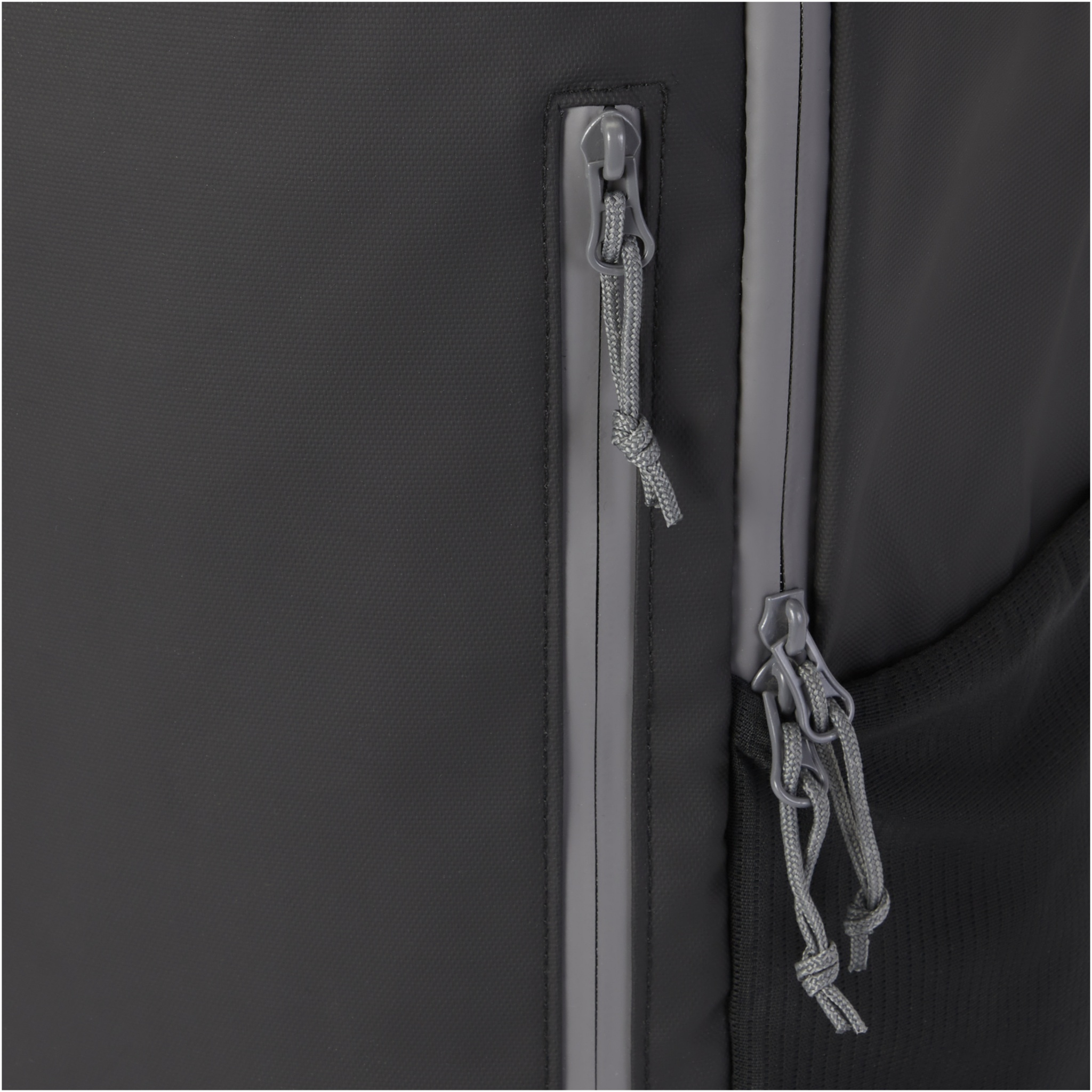 Vedenkestävä reppu kannettavalle tietokoneelle. Repun osat, mukaan lukien vetoketjut, on valmistettu GRS-sertifioiduista kierrätysmateriaaleista. Repussa on pehmustettu, sivusta avautuva lokero 15 tuuman kannettavalle tietokoneelle, useita verkkotaskuja, vetoketjullinen etutasku ja heijastava kaitale näkyvyyttä tuomaan. Pehmustetun selkäosan ja rinnan yli kulkevan säädettävän hihnan ansiosta reppua on mukava kantaa silloinkin, kun se on täynnä. Repun kangas, vuori, nauha ja vetoketjut on valmistettu GRS-kierrätysmateriaaleista. Tilavuus: 21 litraa. PVC-vapaa.