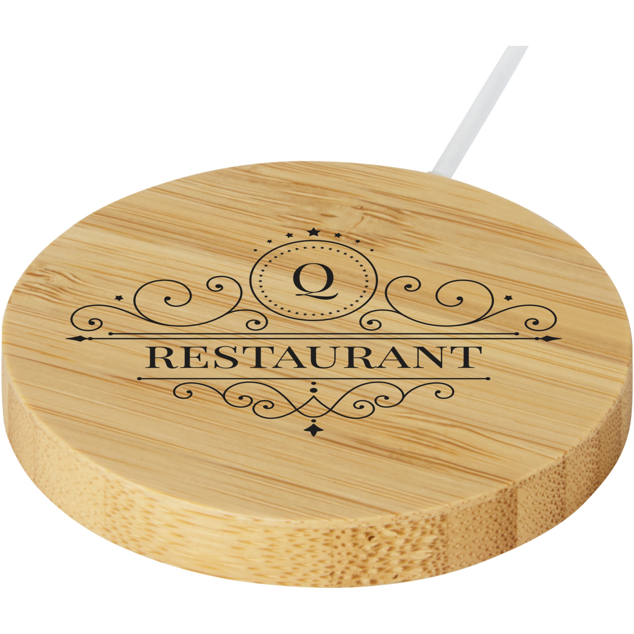 Logo trade liikelahja kuva: Atra 10 W:n bambusta valmistettu langaton latausalusta