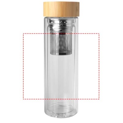 Kaksiseinäinen borosilikaattilasinen vesipullo, jossa on teeuuttaja ja bambukansi. Bambu on peräisin luontoystävällisistä, yhteiskunnallisesti ja ympäristön kannalta vastuullisista lähteistä. Tilavuus: 400 ml. Toimitetaan kierrätetystä kartongista valmistetussa lahjapakkauksessa.