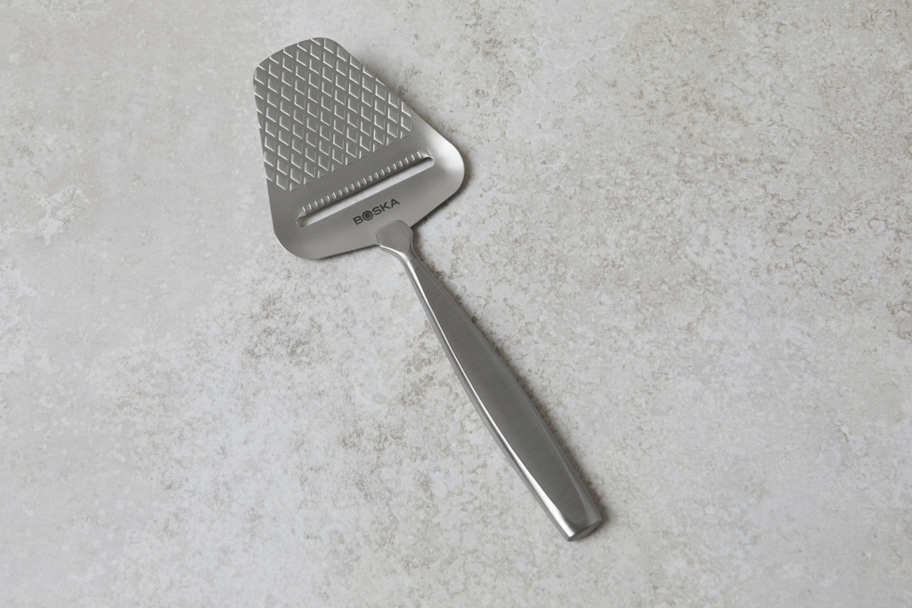 Cheese Slicer Monaco+ on todellinen supertähti, mitä tulee juustoleikkureihin. Tämä ruostumattomasta teräksestä valmistettu leikkuri BOSKA-merkiltä - B Corporation -sertifioidulta yritykseltä - soveltuu kaikenlaisille juustoille, se on astianpesukone- ja jääkaappiturvallinen, ja siinä on ainutlaatuinen tarttumaton timanttikuvio. Tässä arvostetulla Red Dot Design Award -palkinnolla ja elinikäisellä takuulla varustetussa juustohöylässä yhdistyvät huippulaatu ja tyyli.