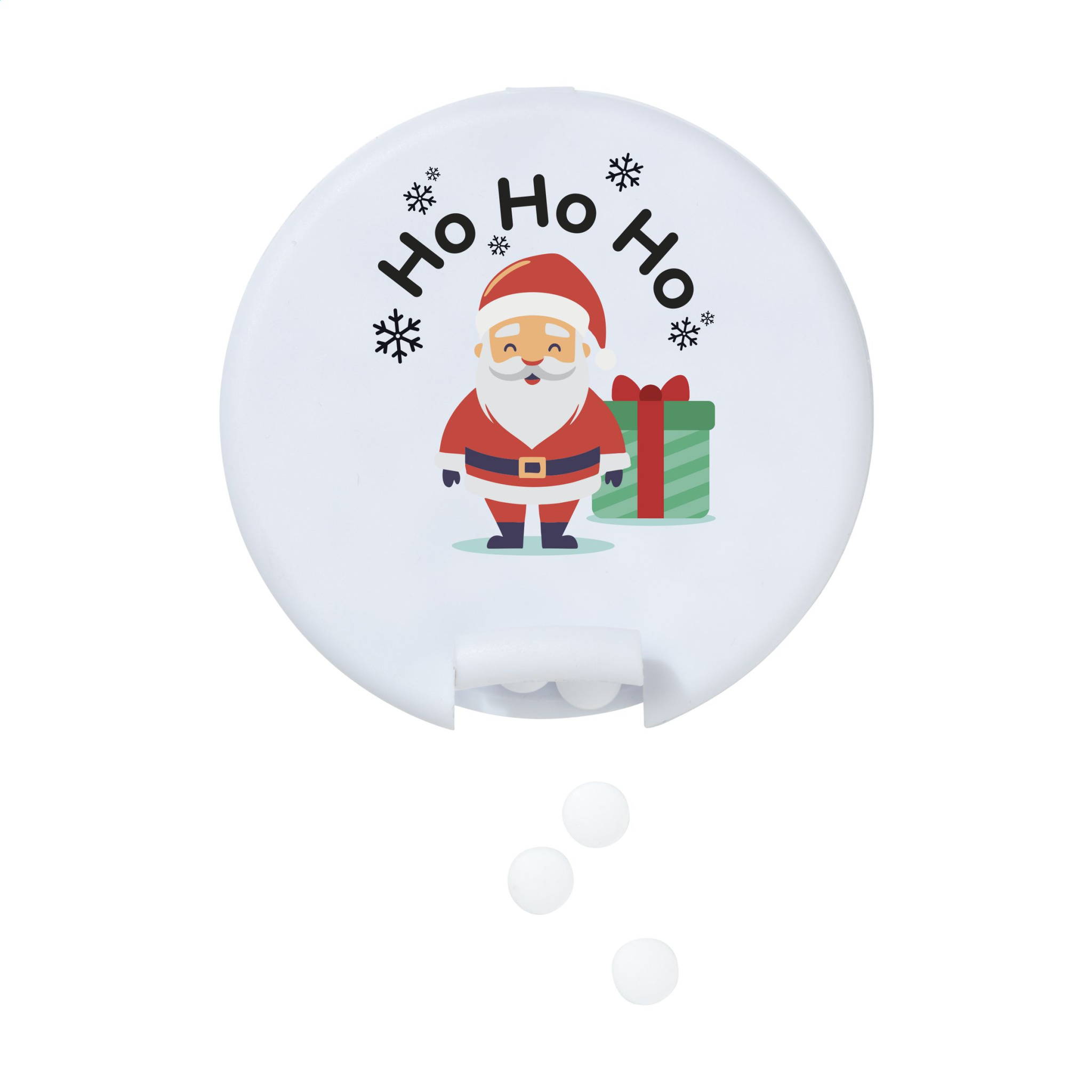 Pyöreä muovinen annostelija täynnä n. 12 g (55 kpl) sokerittomia minttuja. - Tämä tuote on painettu tavallisella joulukuviolla. Valittavana 6 erilaista mallia kuvien mukaisesti. Suunnittelua ei ole mahdollista muokata.