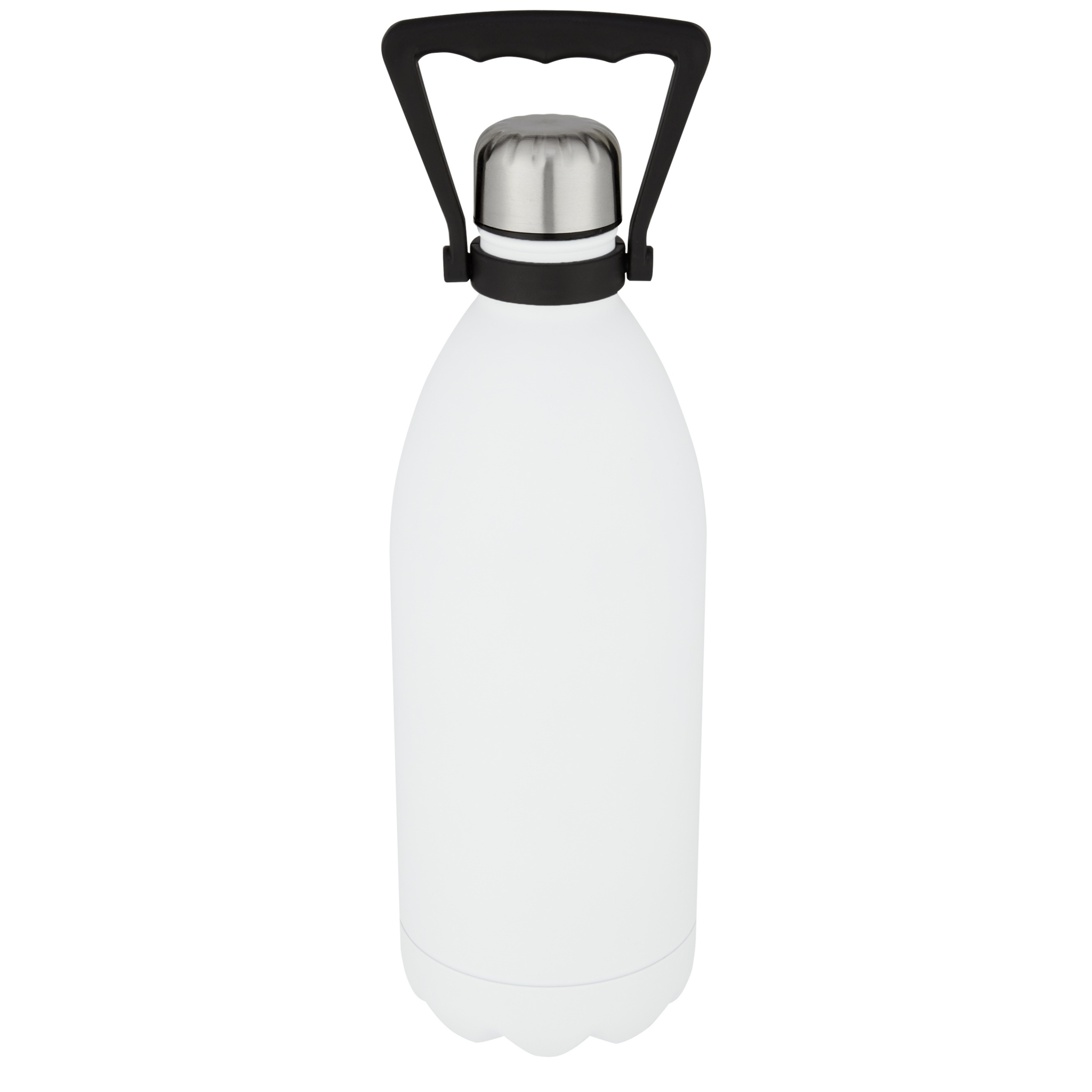 Hyvin suuri, tyhjiöeristetty ruostumattomasta teräksestä valmistettu pullo, joka on edustavasti muotoiltu ja helppo kantaa siihen kuuluvalla kätevällä kahvalla. Eristetty 18/8 ruostumaton teräs pitää juoman kuumana tai kylmänä useita tunteja. BPA-vapaa, testattu ja hyväksytty elintarviketurvallisuslainsäädännön (LFGB) mukaisesti. Testattu ja hyväksytty ftalaattipitoisuuden osalta REACH-asetusten mukaisesti. Tilavuus on 1,5 litraa. Suositellaan pestäväksi käsin. Toimitetaan kierrätetystä kartongista valmistetussa lahjapakkauksessa.