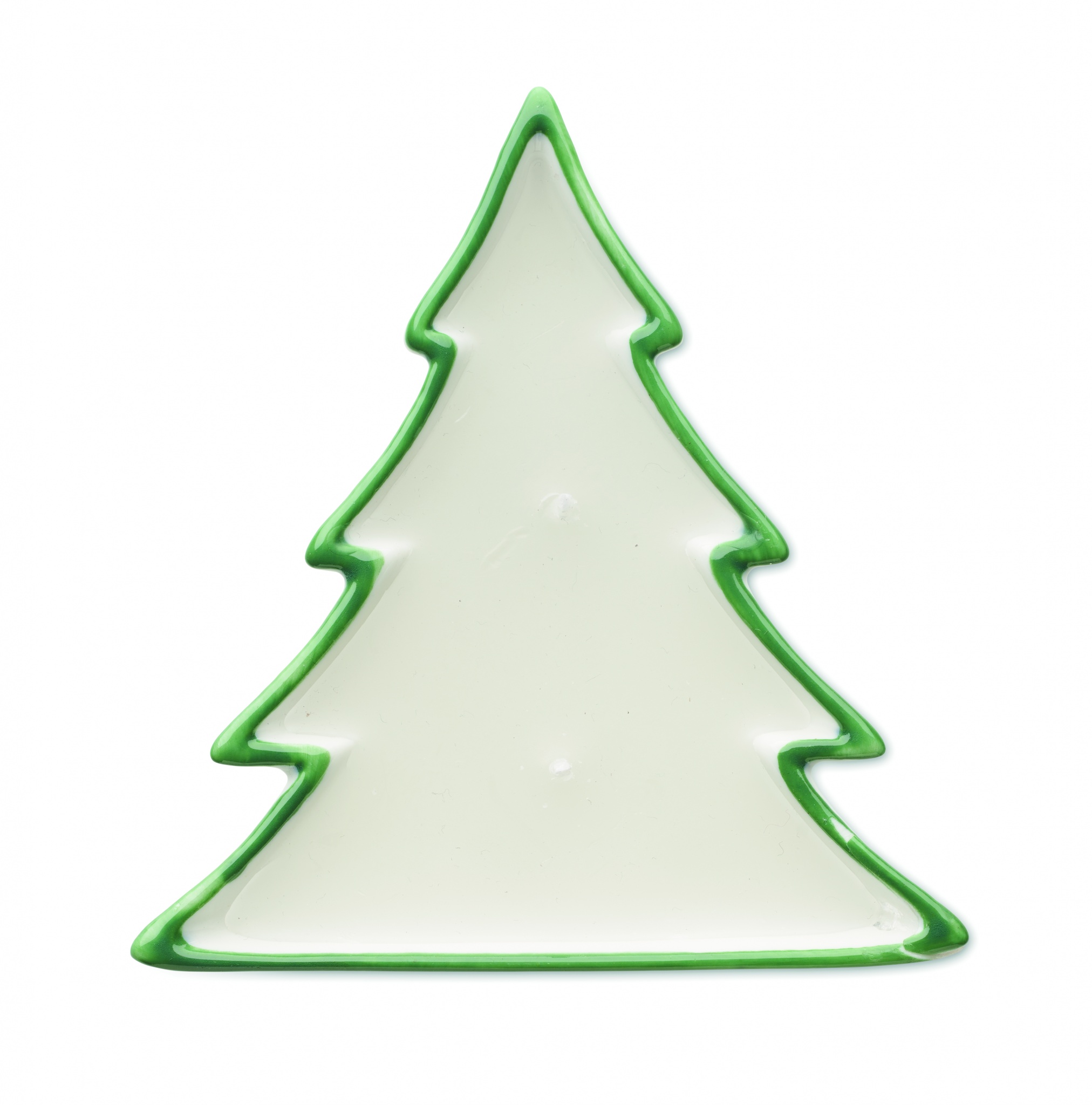 Kasvipohjainen vahakynttilä joulukuusen muotoisessa posliinisessa pidikkeessä, jossa on 2 sydänlankaa. 60 gr: 4 tuntia.