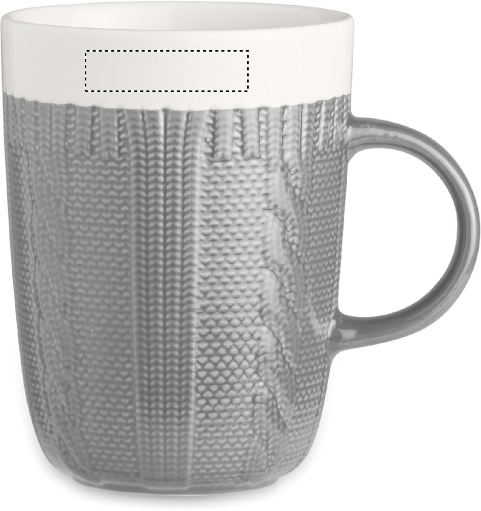 310 ml keraaminen muki, virkatun näköisellä designilla. Pakattuna yksittäin pahvilaatikkoon.