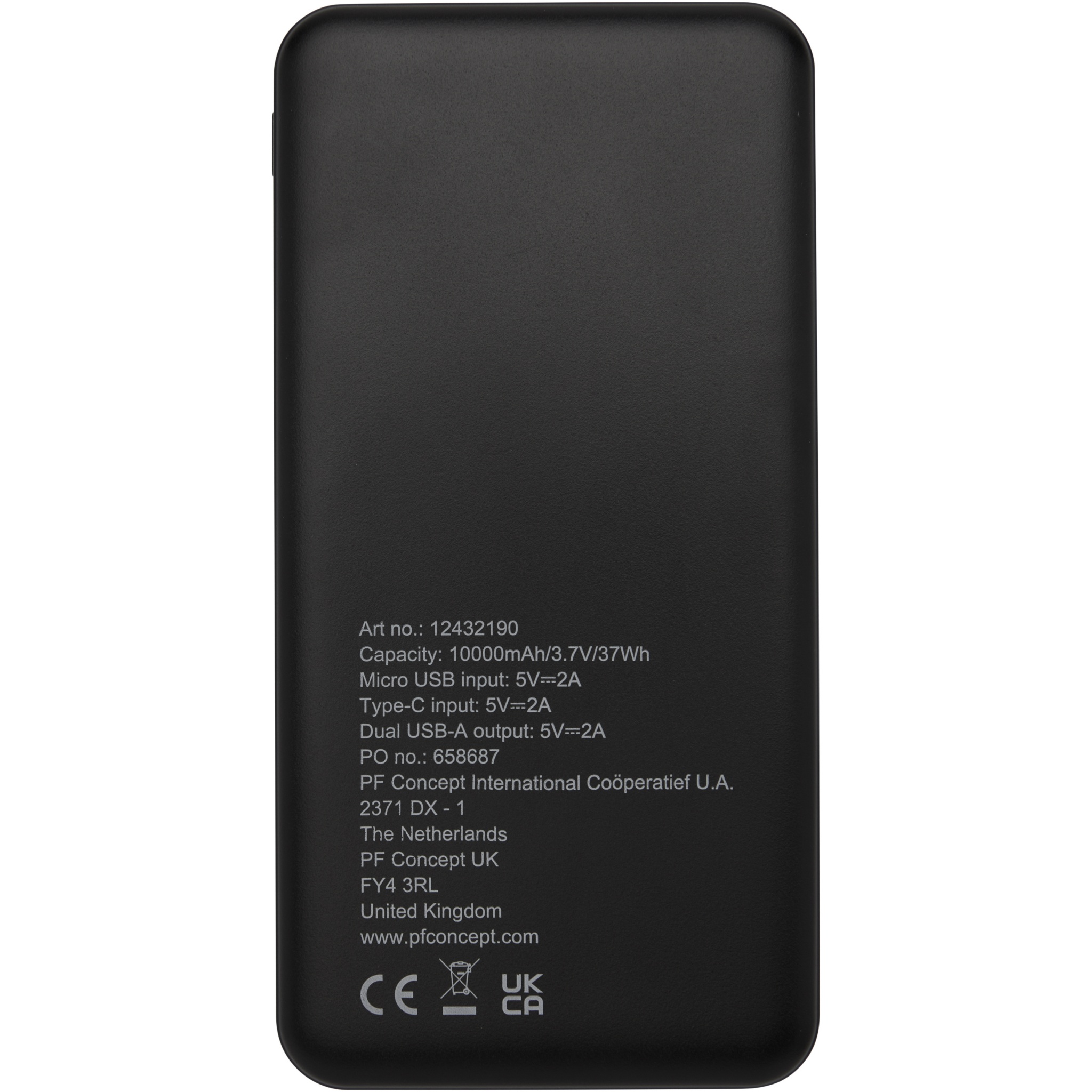 Kierrätetystä ABS-muovista valmistettu varavirtalähde. Varavirtalähde sisältää pitkäikäisen A-luokan 10 000 mAh:n litiumpolymeeriakun pikalatausta varten. Merkkivalot näyttävät jäljellä olevan energiatason, joten tiedät aina, milloin ladata. Type-C-tulo 5 V/2 A, Micro-USB-tulo 5 V/2 A, kaksi USB-A-lähtöä 5 V/2 A, kokonaisteho 10 W. Mukana toimitetaan 30 cm:n TPE 2A USB-A - Type-C -latauskaapeli, käyttöohje ja voimapaperista valmistettu lahjapakkaus.