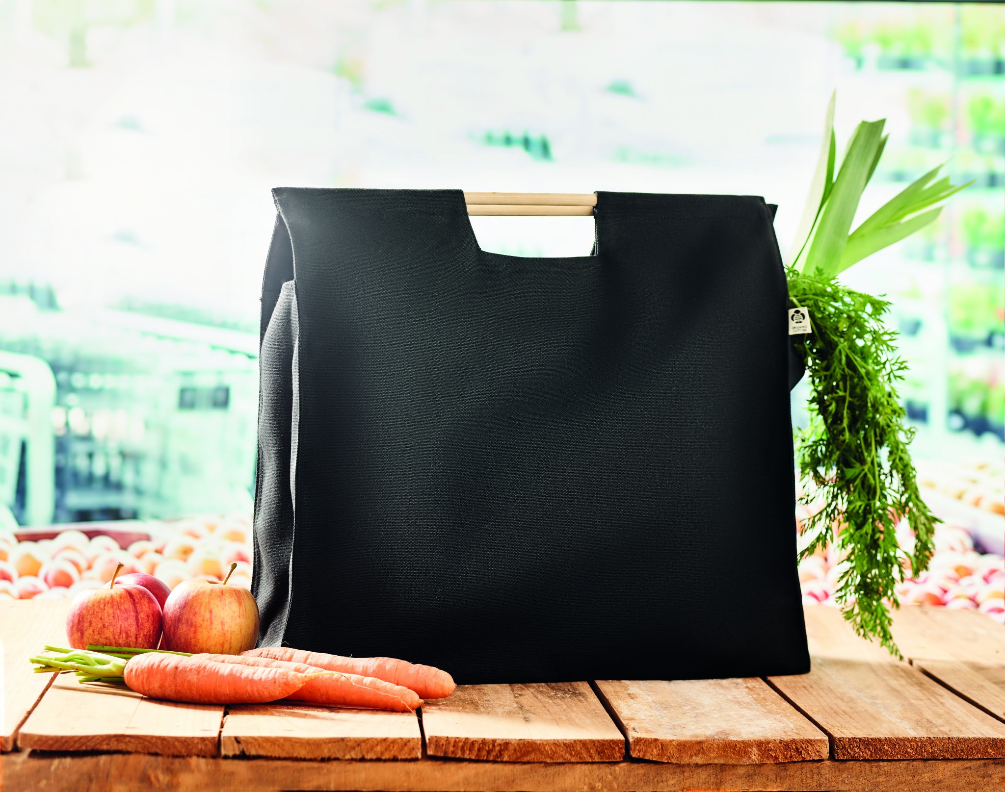 360 gr/m² orgaaninen canvas ostoskassi bambuisilla kahvoilla.