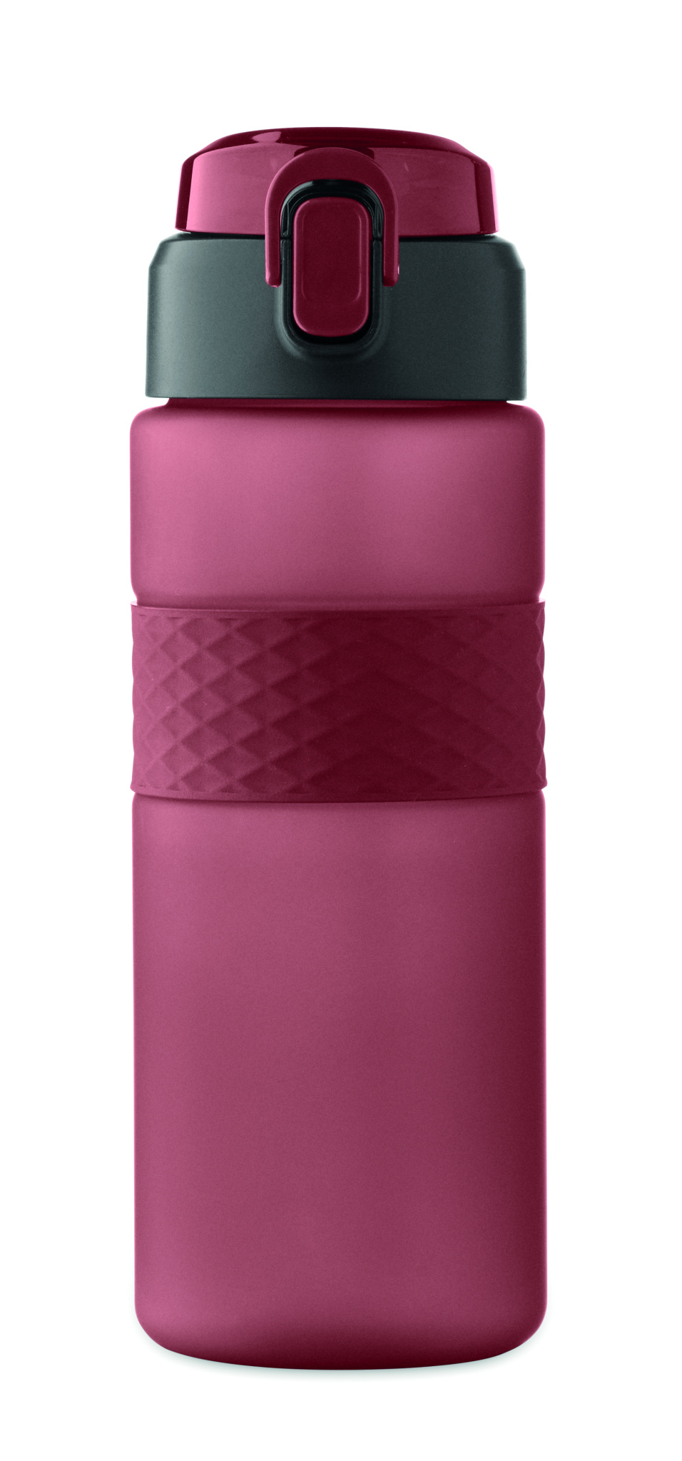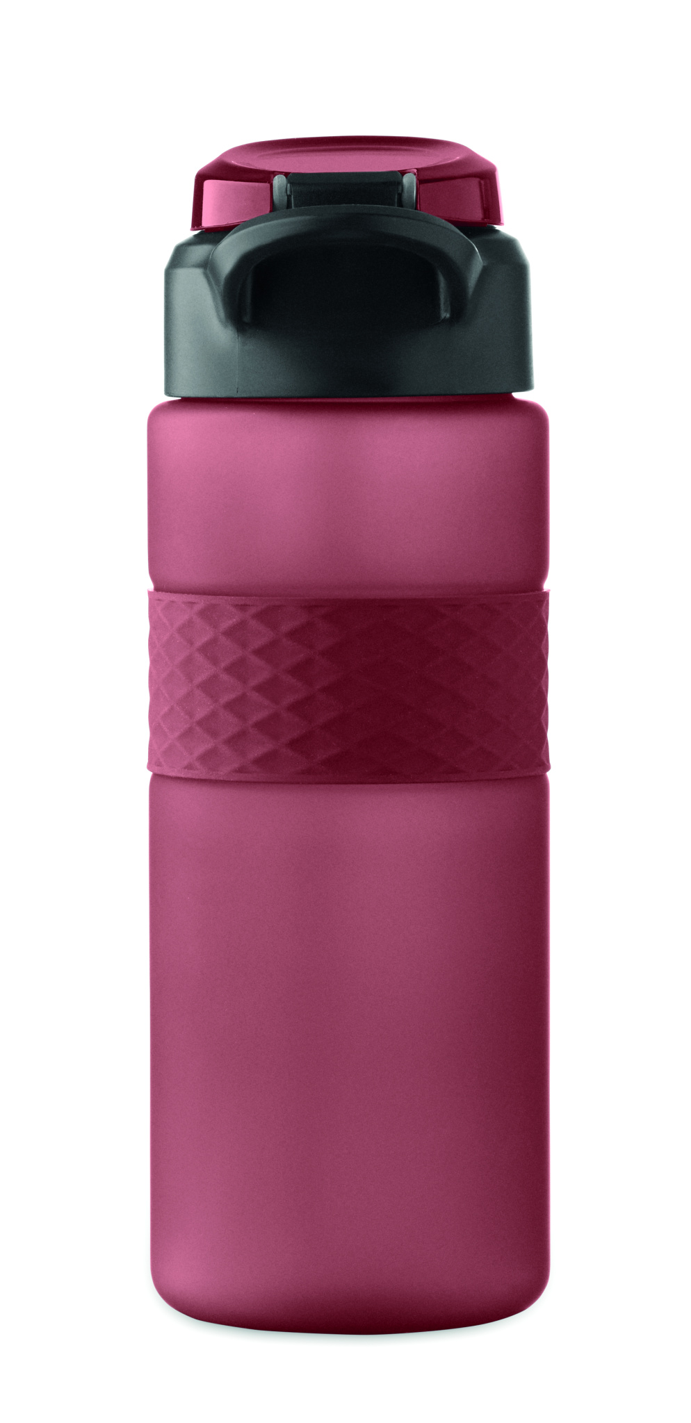 RPET-muovista valmistettu juomapullo, jossa silikonikahva, PP-läppäkorkki ja turvalukko. Mukana integroitu pilli. Vuotamaton. Tilavuus: 700 ml.