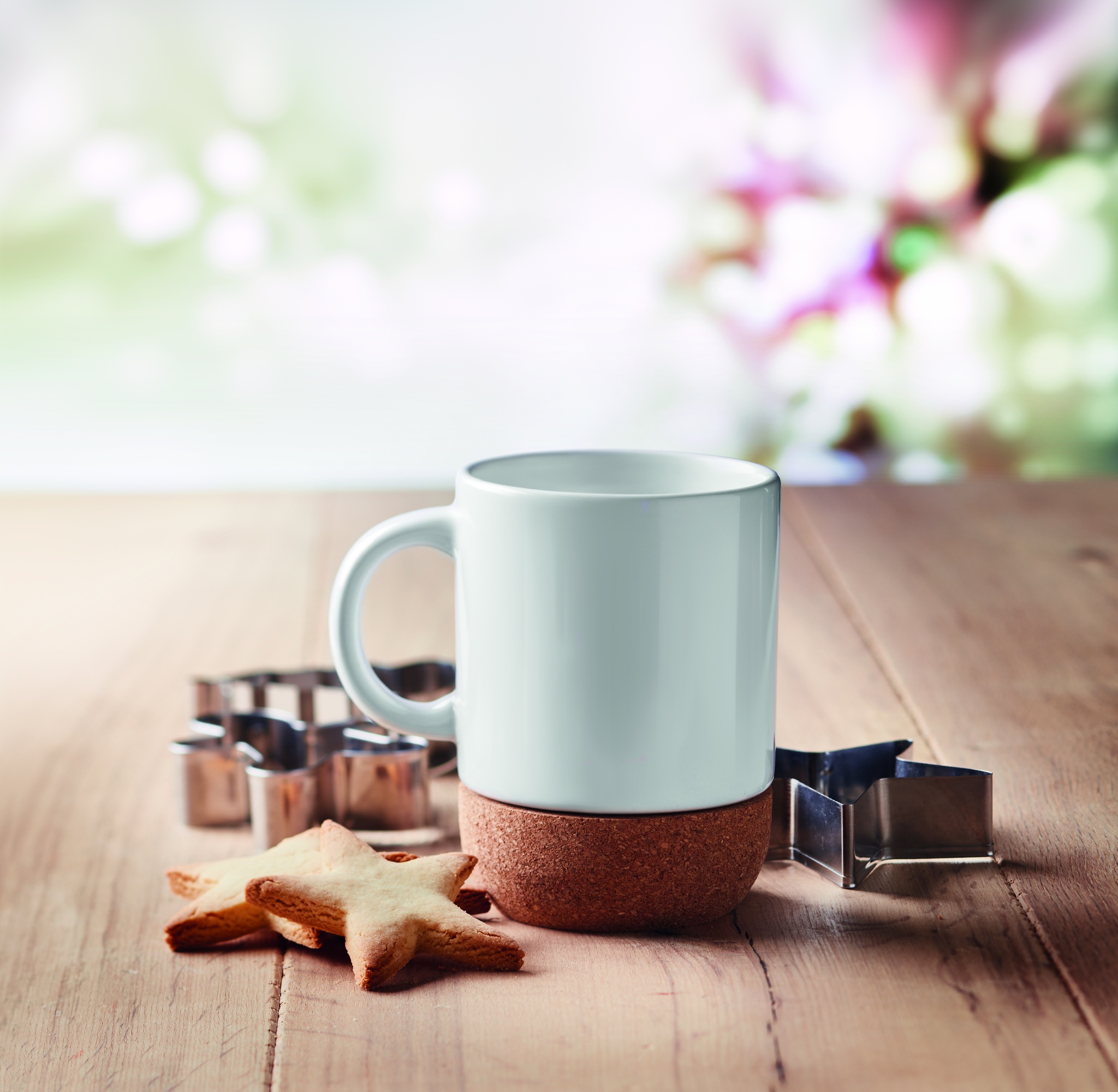 300 ml keraaminen muki sublimaatiopainatukseen, korkki pohjalla. Pakattuna yksittäin pahvilaatikkoon.