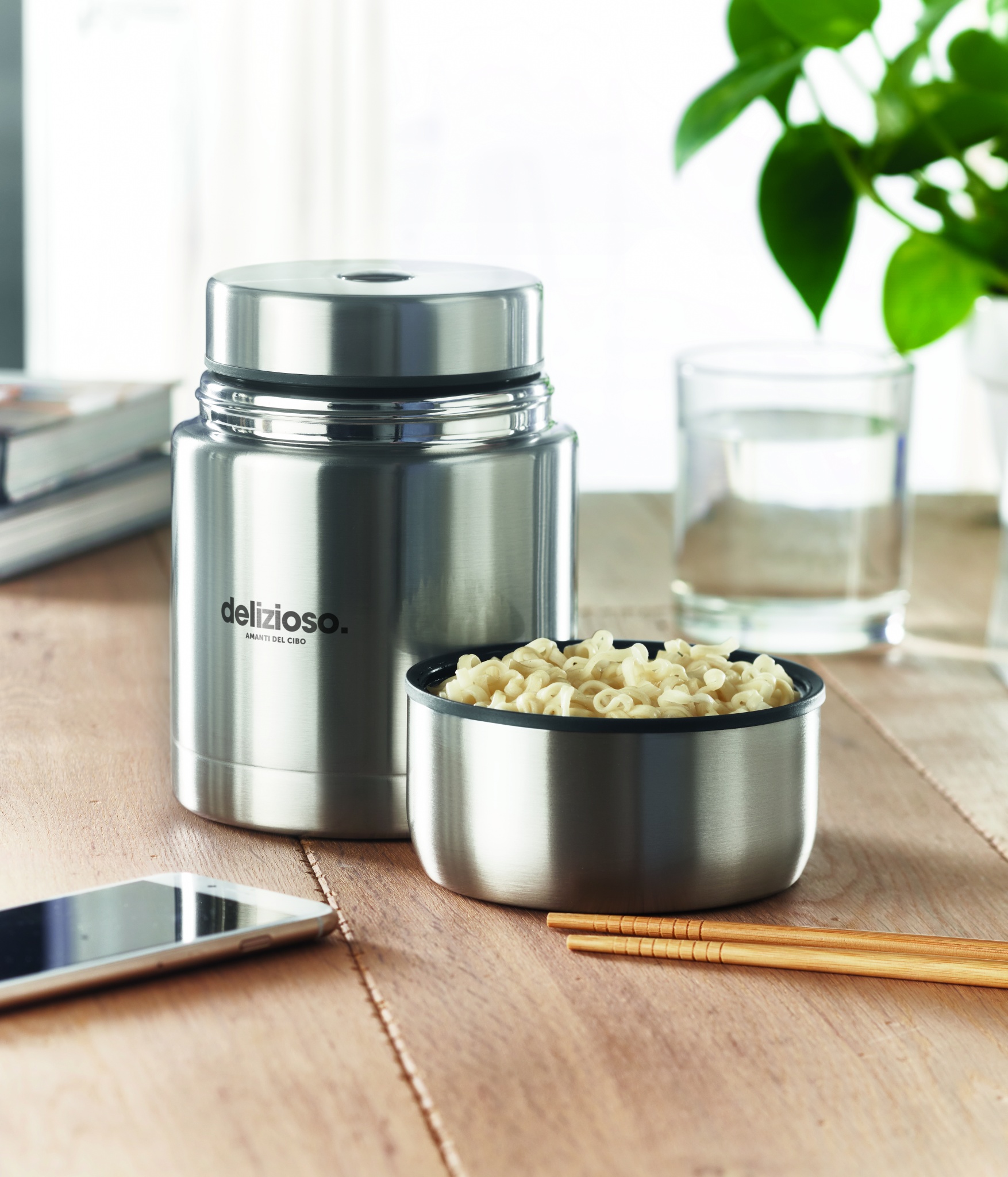 Kaksiseinäinen ruostumattomasta teräksestä valmistettu 800 ml purkki.