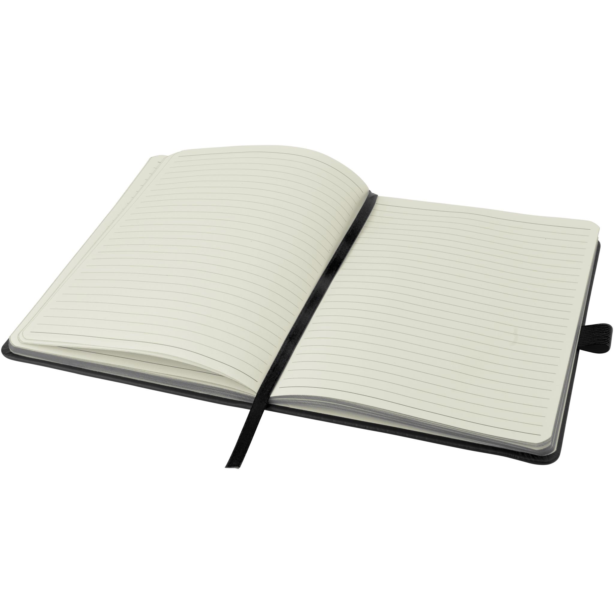 Блокнот А5, 80 листов бежевой бумаги (70 г/м2). С закладкой и эластичной застежкой.