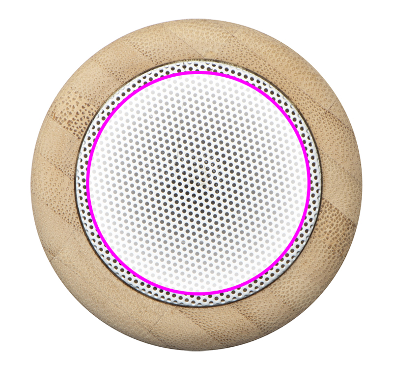 Динамик Bluetooth 5.0 из ABS и бамбука с меняющей цвет светодиодной подсветкой, аккумулятором емкостью 300 мАч, временем зарядки 2 часа и радиусом действия до 10 метров. Ваш логотип будет размещен на динамике.