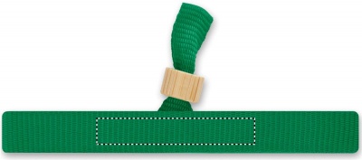 Браслет для мероприятий из полиэстера 300D RPET с бамбуковым кольцом. Размер браслета 34 см и 1,5 см в ширину.