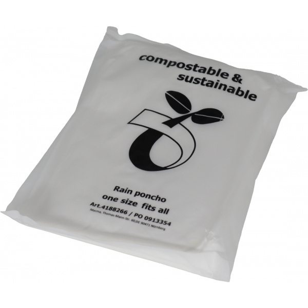 Компостируемый дождевик-пончо из PLA без содержания фталатов с сумкой-переноской. Это пончо — устойчивая альтернатива. Ваш логотип будет напечатан на сумке.