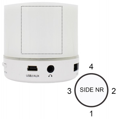 Колонка беспроводная круглой формы, переливающаяся 3 цветами. Есть функция хэндс фри ответа на звонок. Имеется разъем для SD карты и AUX/USB кабель. Работает от литий- ионного аккумулятора 450 мАч (включен).