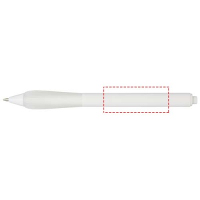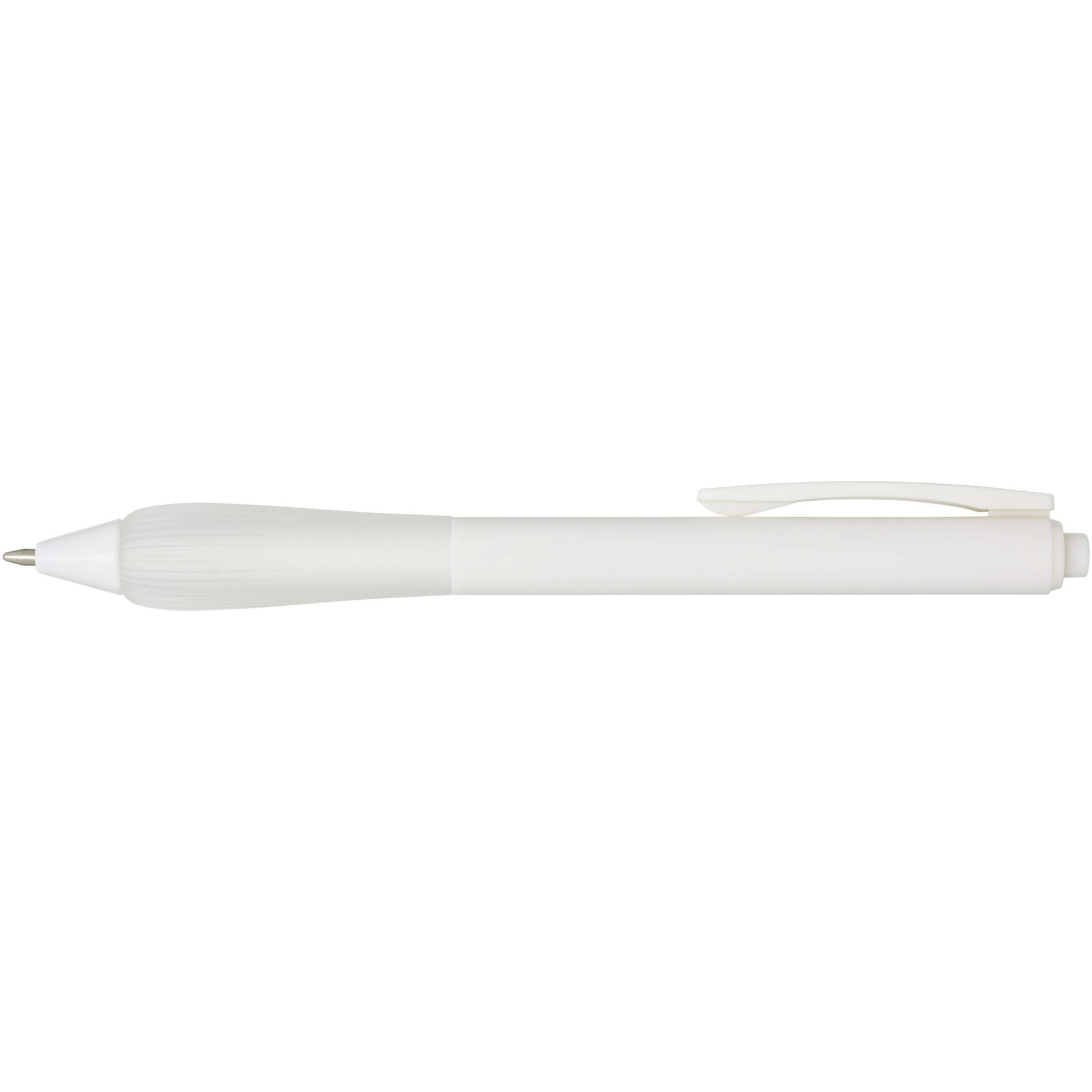 Шариковая ручка из переработанного пластика с прорезиненным корпусом и рукояткой из TPR. Цвет чернил: черный. Длина непрерывной линии: 1000 метров. Размер пера: 1,0 мм.