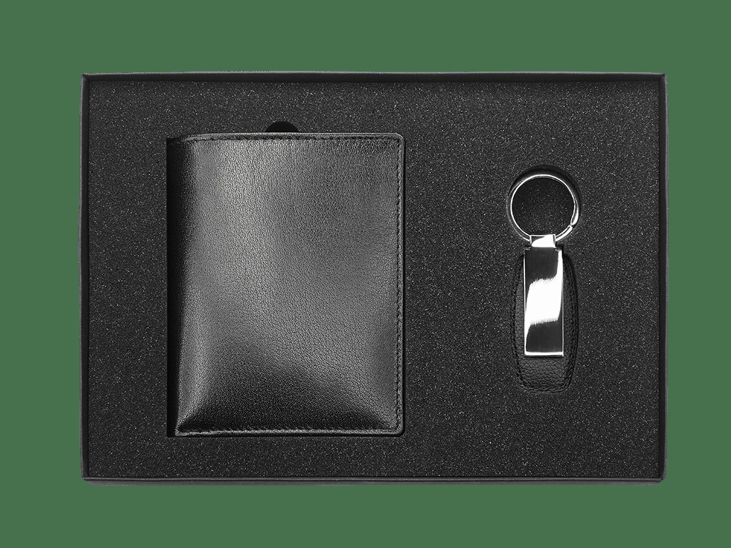 В комплект входит кожаный бумажник