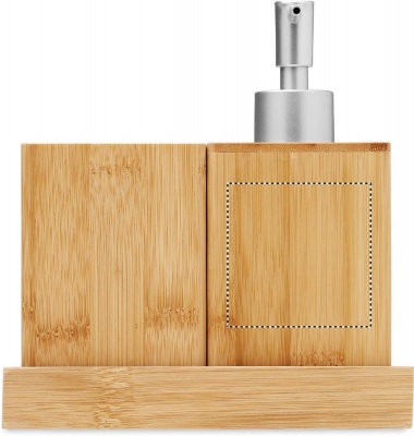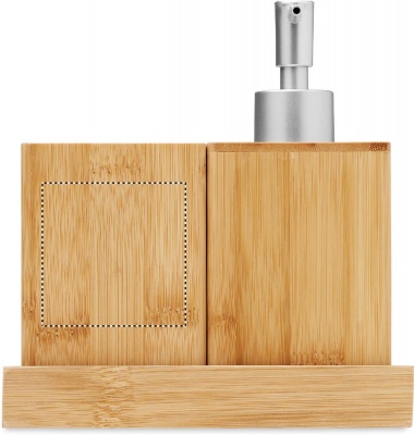 Набор бамбуковых аксессуаров для ванной комнаты из 3 предметов. Включает диспенсер для мыла, стаканчик и подставку.