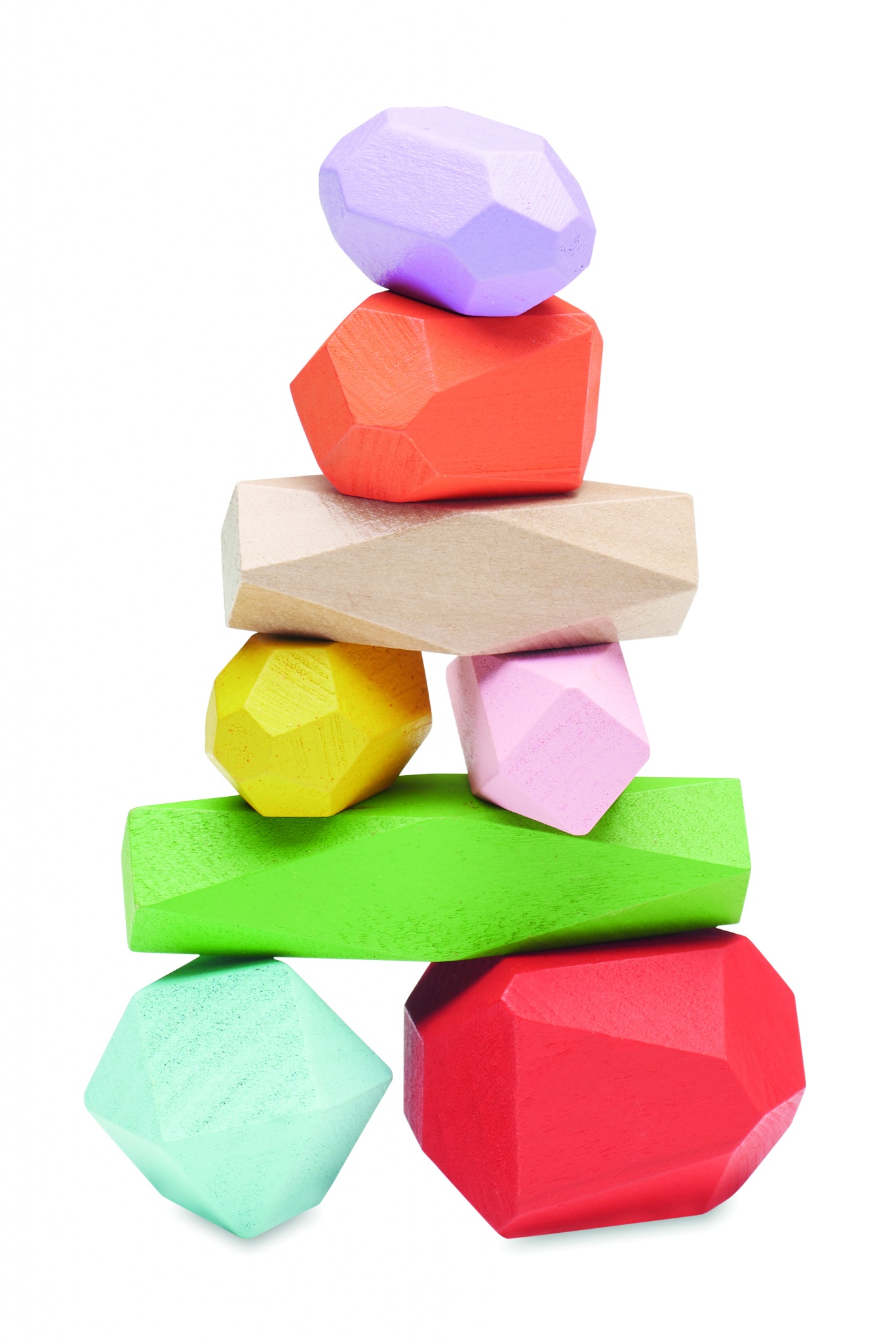 Набор из 8 разноцветных деревянных фигурок в форме камней в хлопковом мешочке на шнурке.