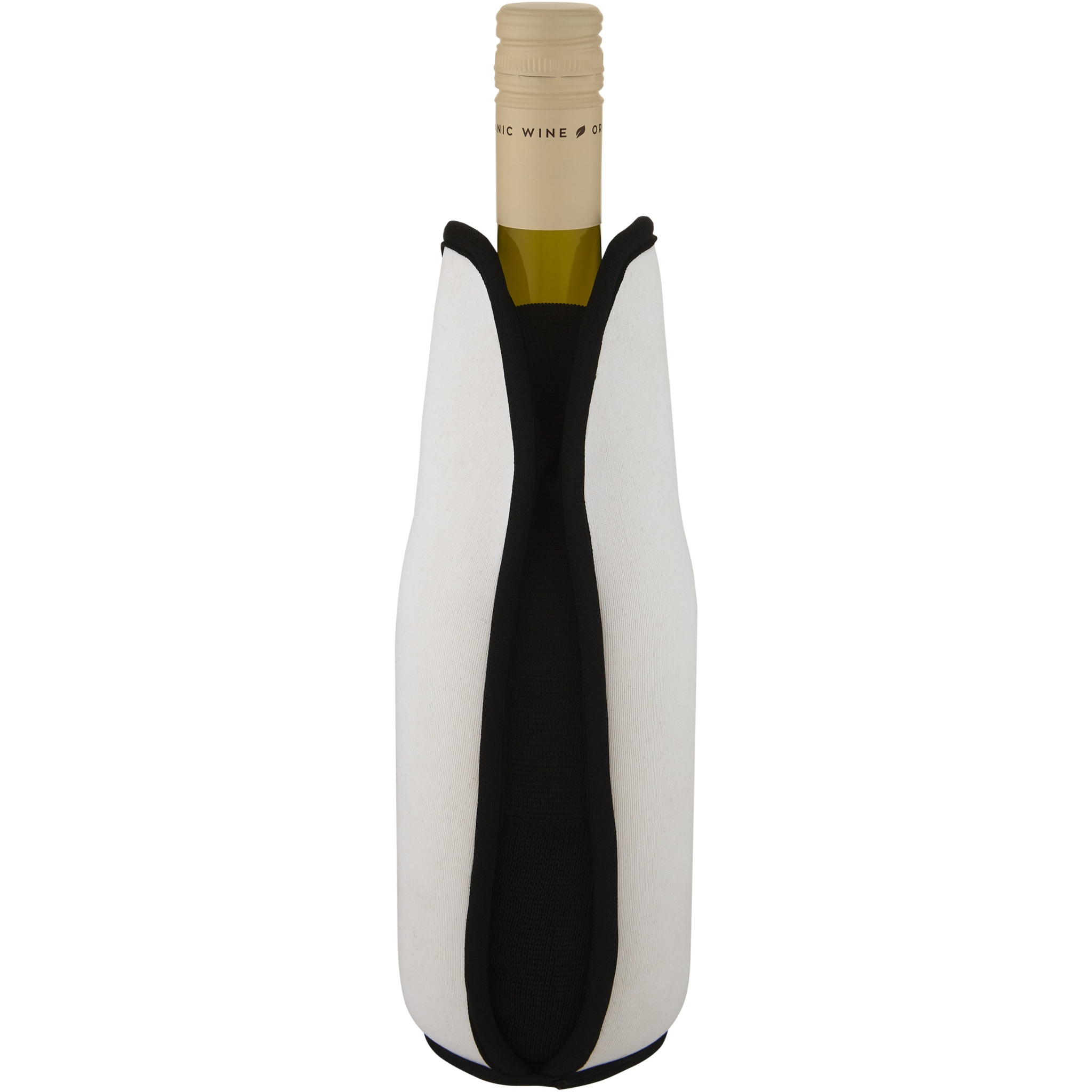 Держатель-рукав из переработанного неопрена для бутылки с вином с тонкой прострочкой и дополнительной изоляцией, которая сохраняет вино прохладным в течение длительного времени и с помощью которой держать бутылку гораздо удобнее. Держатель растягивается, поэтому подойдет под любой размер бутылки и будет плотно ее удерживать. Он также не даст бутылке разбиться во время транспортировки.
