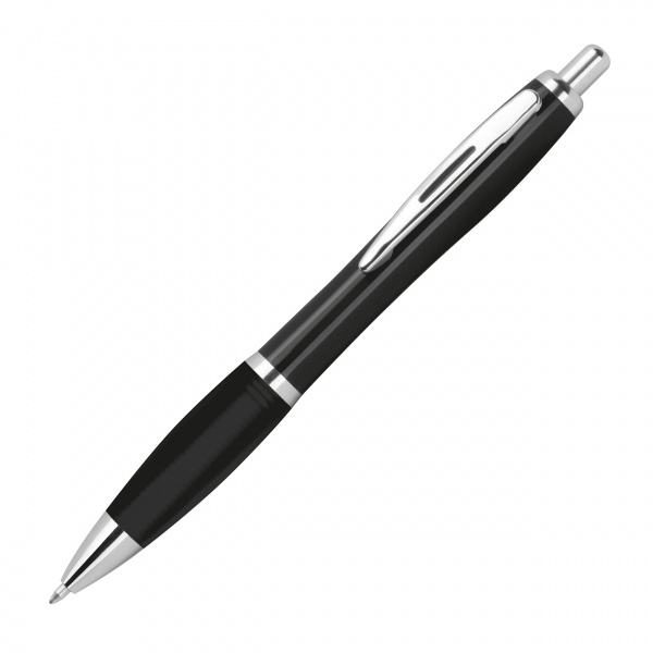 Шариковая ручка из переработанного АБС с резиновой зоной захвата и большим стержнем. Мы печатаем ваш логотип на правой стороне зажима.