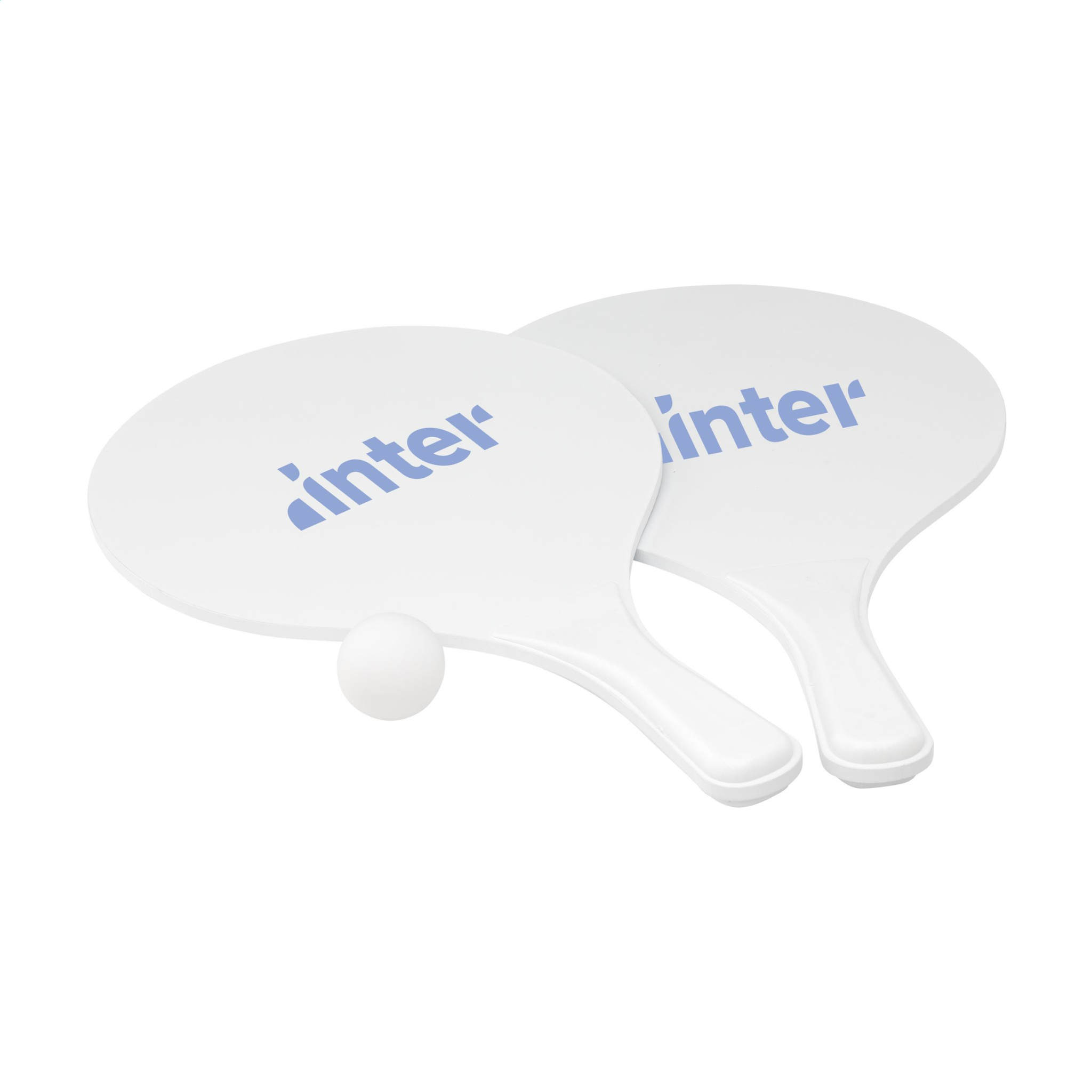 Спортивный пляжный набор: 2 ракетки из МДФ с ручками из полипропилена и резиновым мячом. Каждый набор поставляется в сетчатой упаковке.