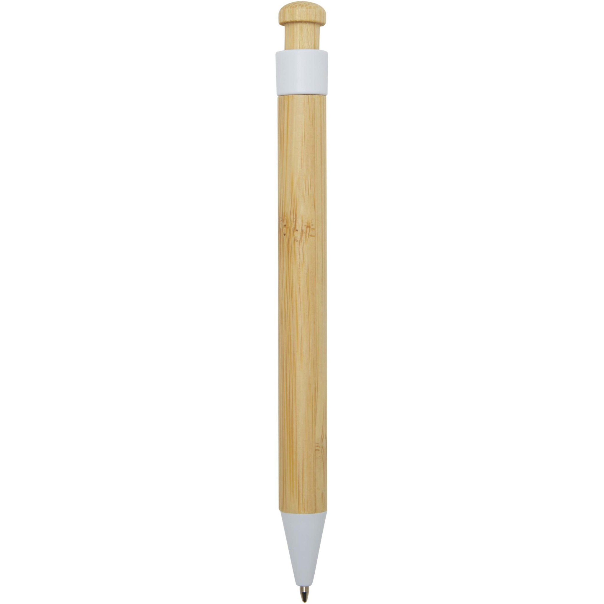 Шариковая ручка с зажимом и наконечником из переработанного пластика, а кнопка и корпус изготовлены из бамбука. Цвет чернил: черный. Длина непрерывной линии: 1000 метров. Размер пера: 1,0 мм.